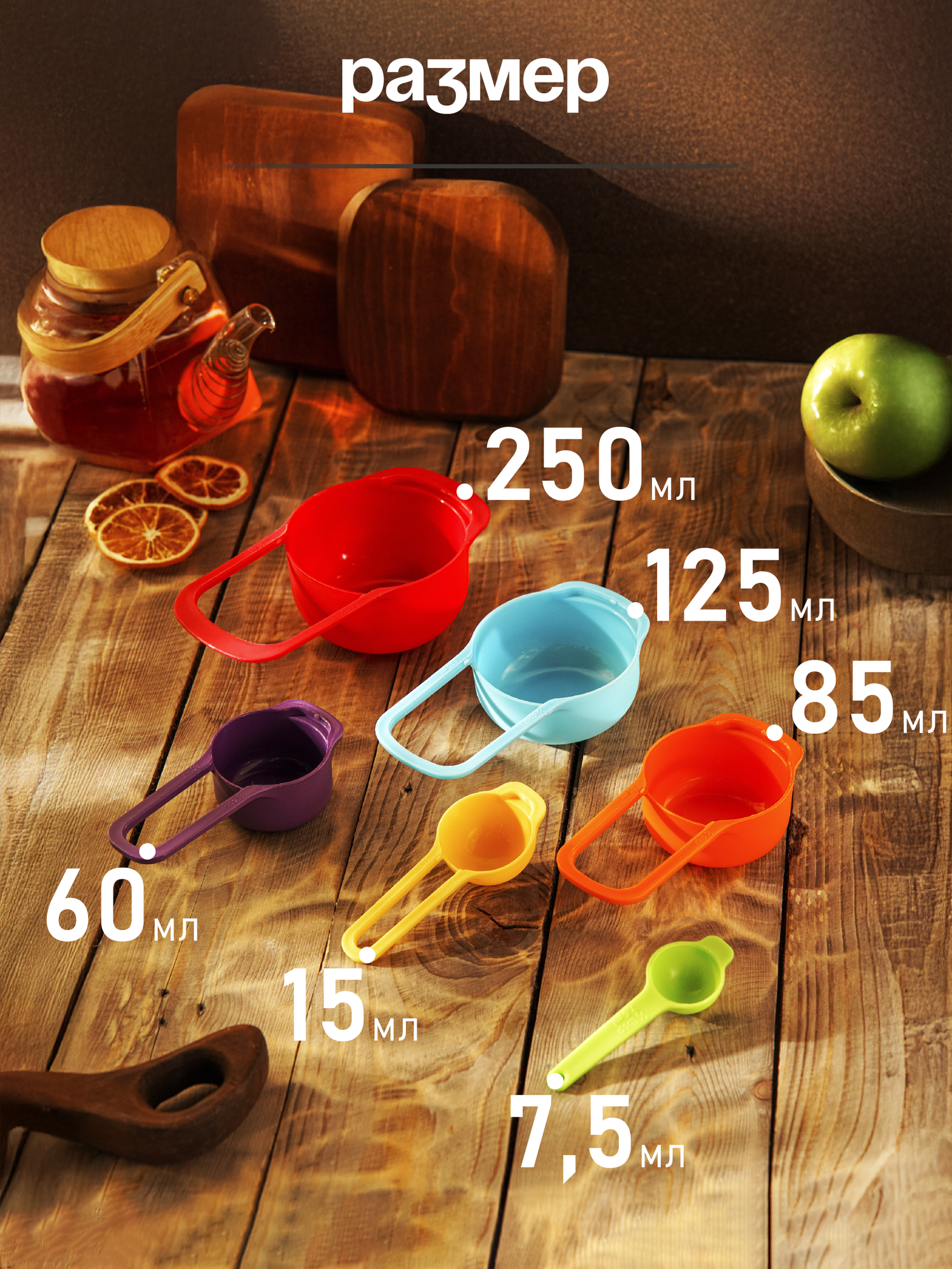 Купить Набор мерных ложек Доляна «Креатив», 6 шт: 250 мл,125 мл, 85 мл, 60 мл,15 мл,7,5 мл, цвет микс