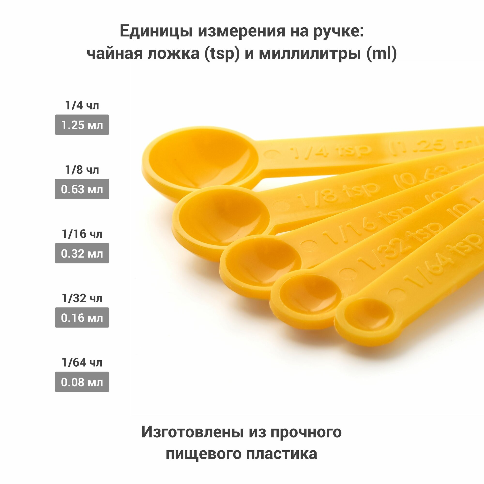 Набор пластиковых мерных ложек из 5 шт., желтые интересное: