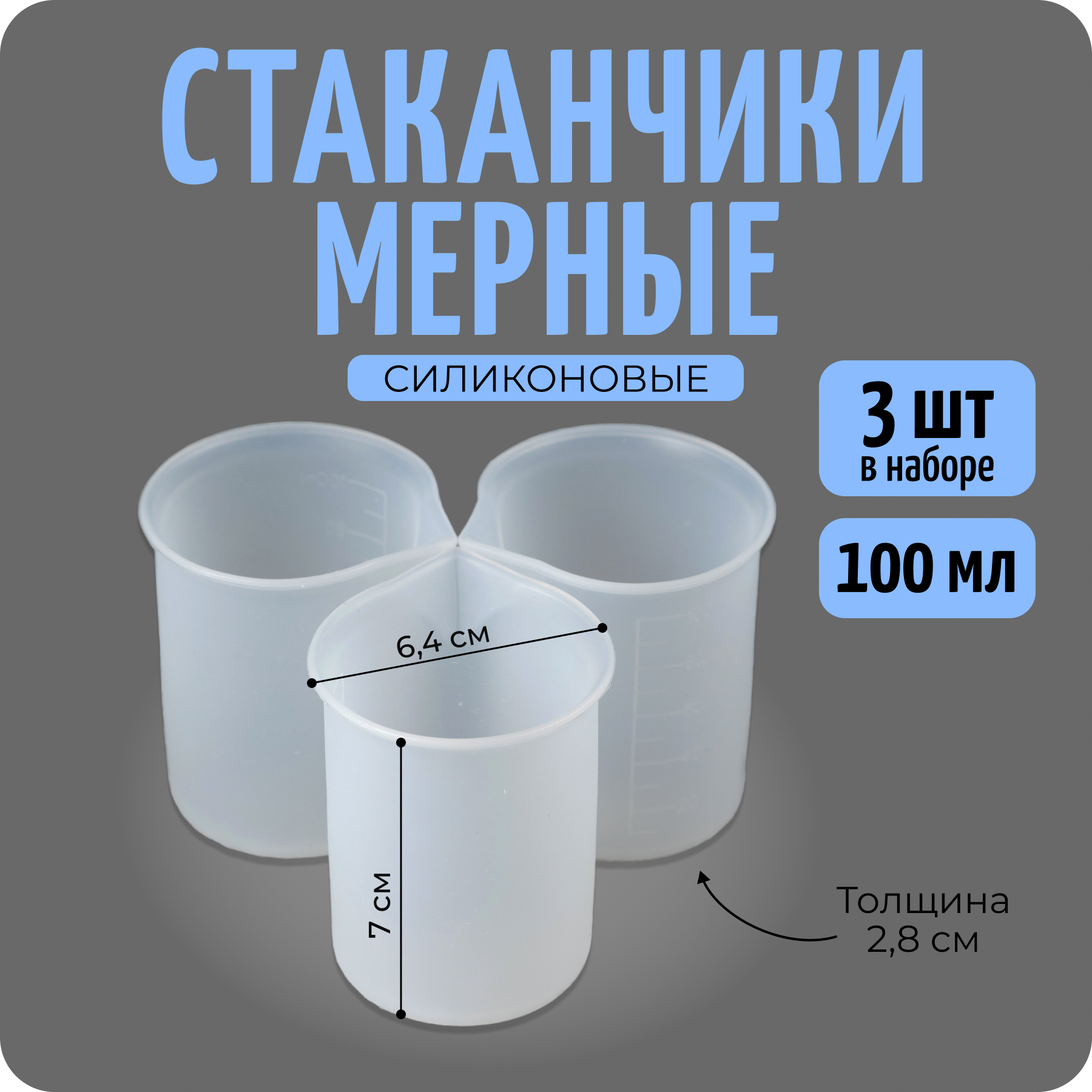 Мерные стаканы для смешивания, силиконовые 3 шт по 100 мл, COLOR Si интересное:
