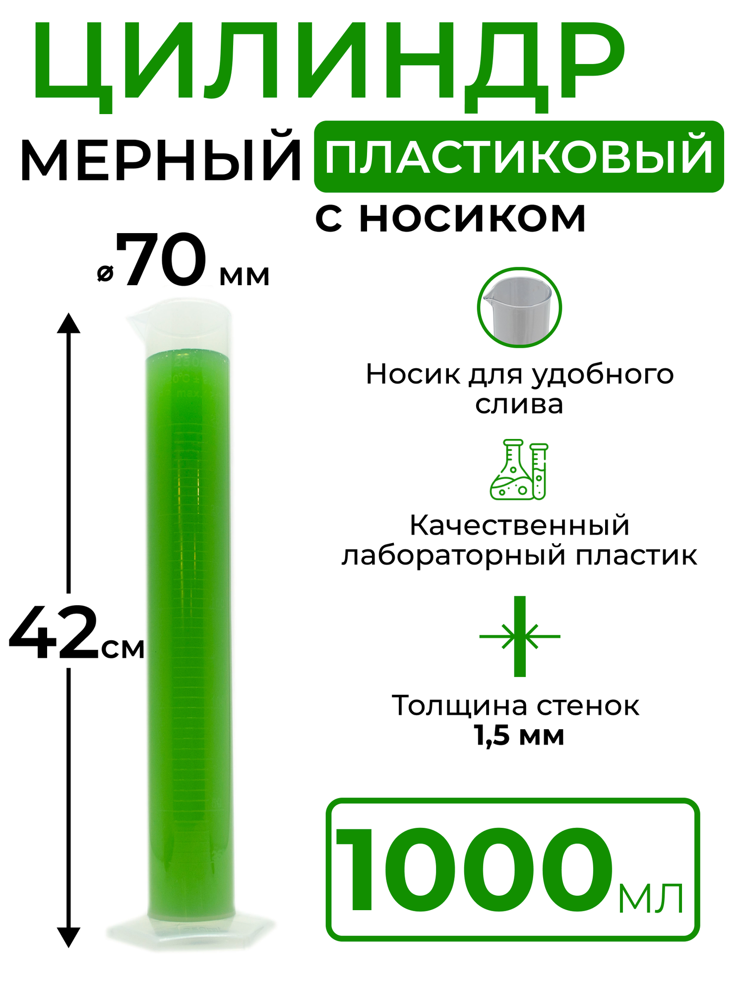 Купить Цилиндр мерный пластиковый с носиком, 1000 мл