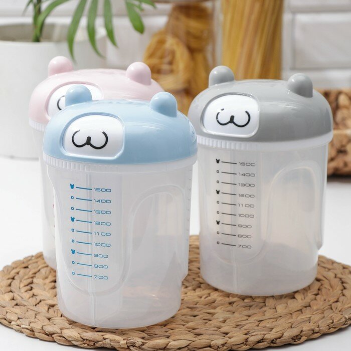 Стакан мерный, 3 отделения, с крышкой 1,5 л, цвет микс интересное: