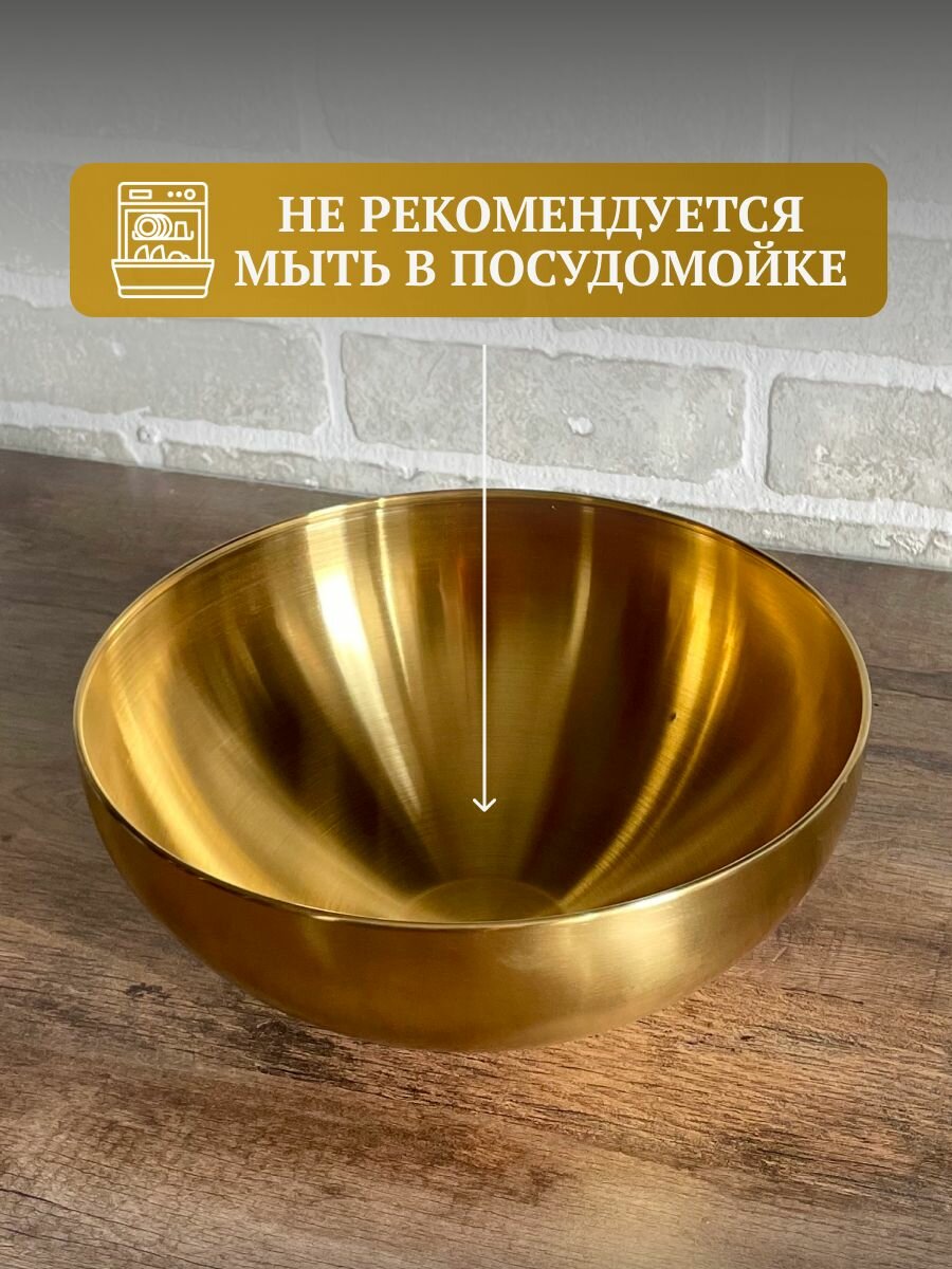 Глубокий салатник из нержавеющей стали, металлическая миска для кухни объем 2,5 л, диаметр 25 см интересное: