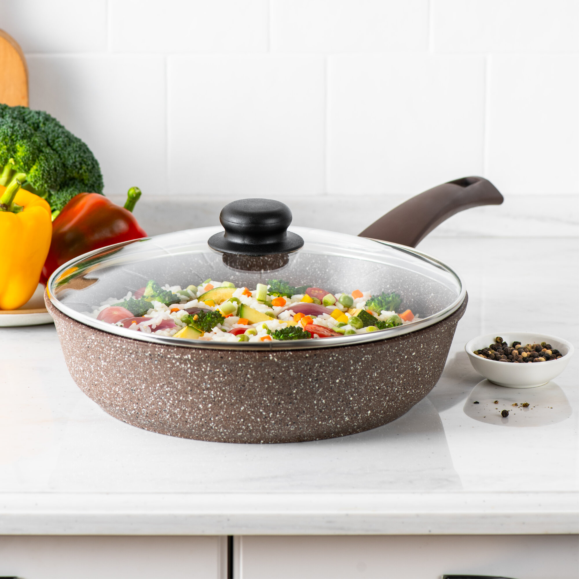 | Комплектация | сковорода с крышкой 28 см; сковорода с крышкой 24 см |