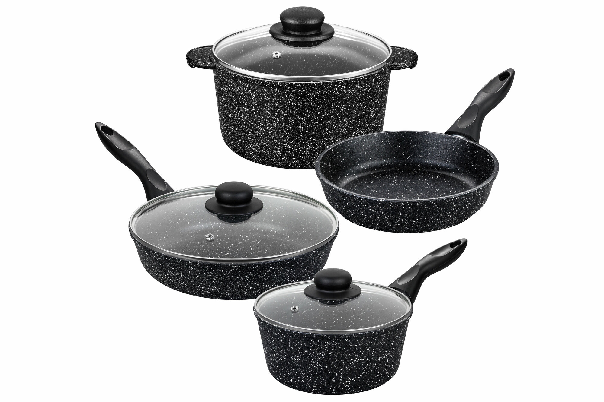 Набор посуды 4 пр. Elan Gallery Гармония вкуса Черный мрамор - Кастрюля 3л, ковш 1,5л, сковорода 24см, сковорода 20см