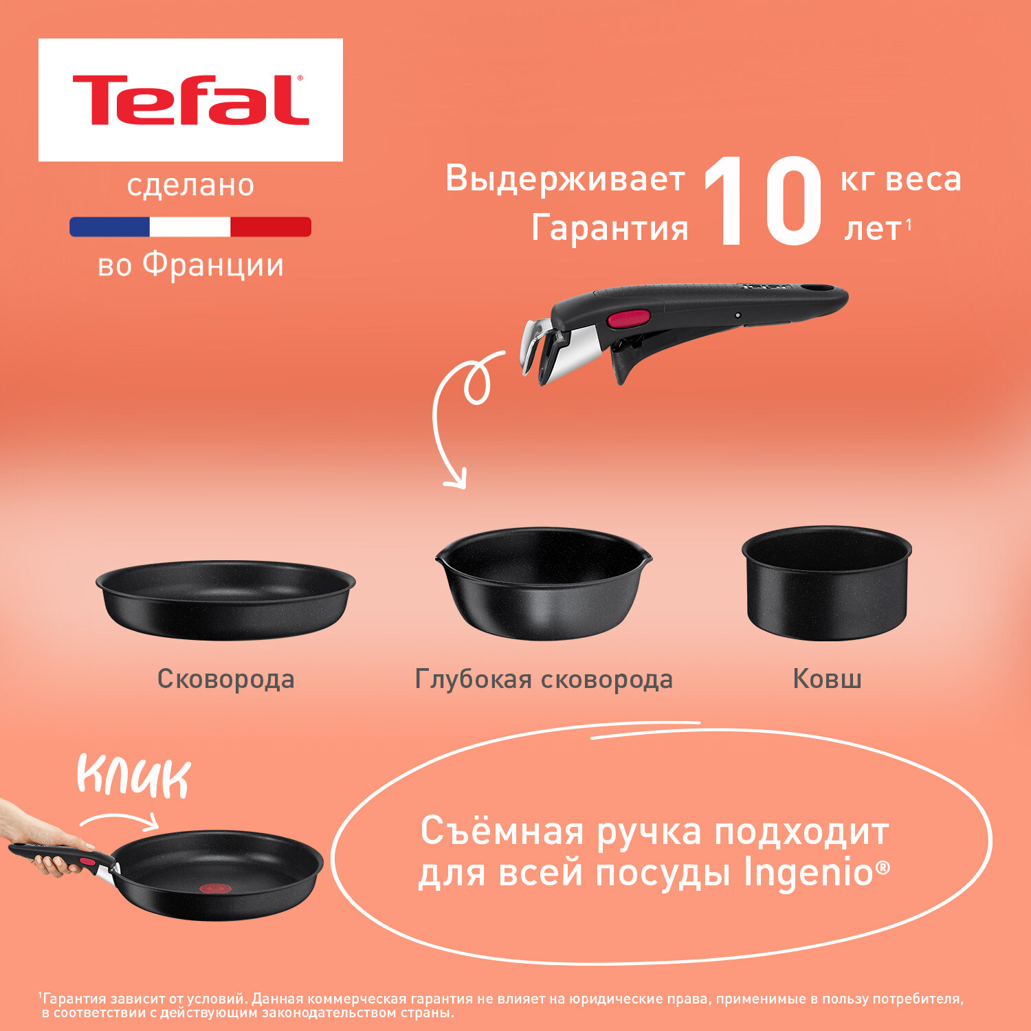 Набор посуды Tefal Ingenio Exception Noir со съемной ручкой, подходит для всех типов плит, включая индукционные, Франция