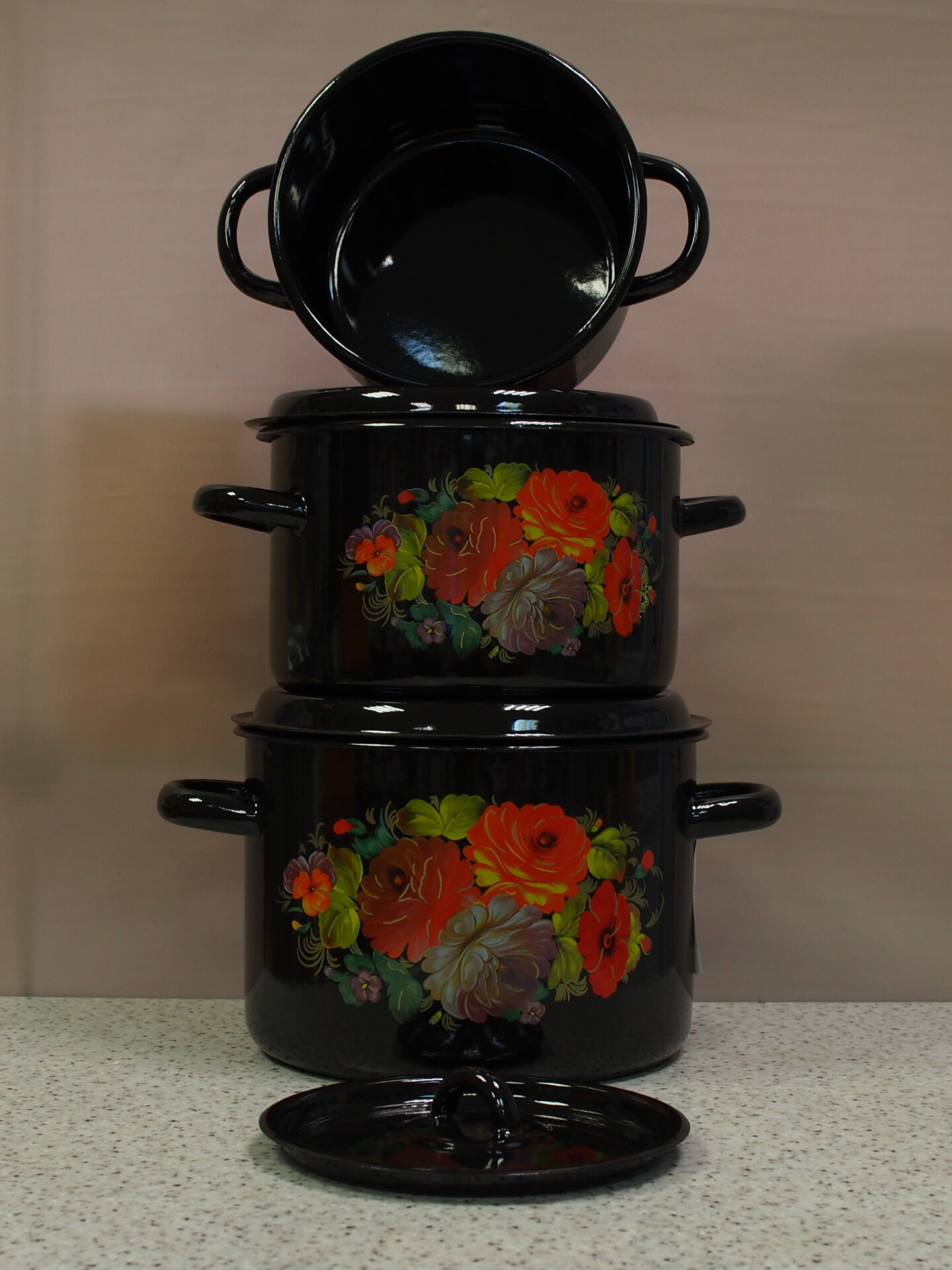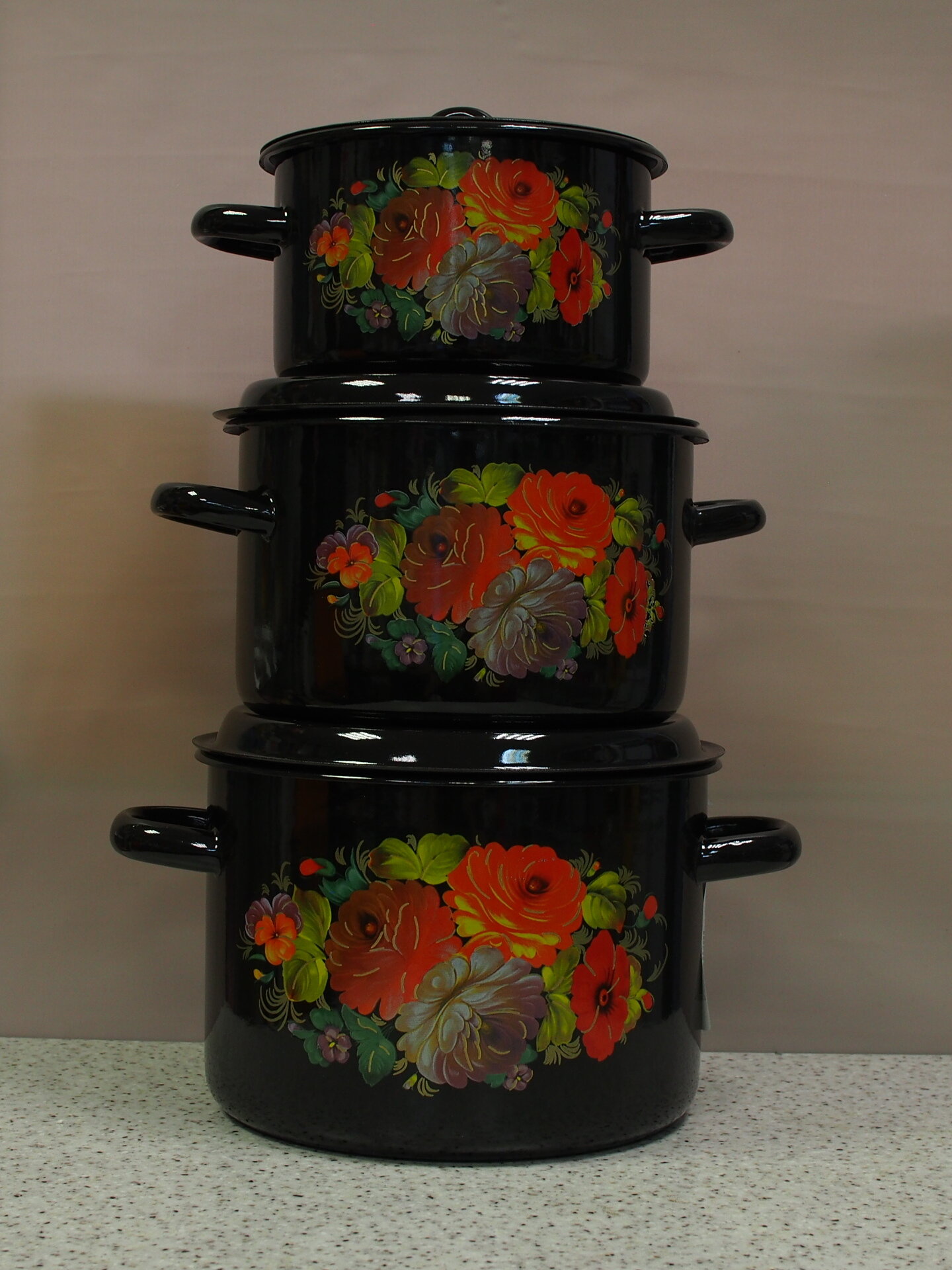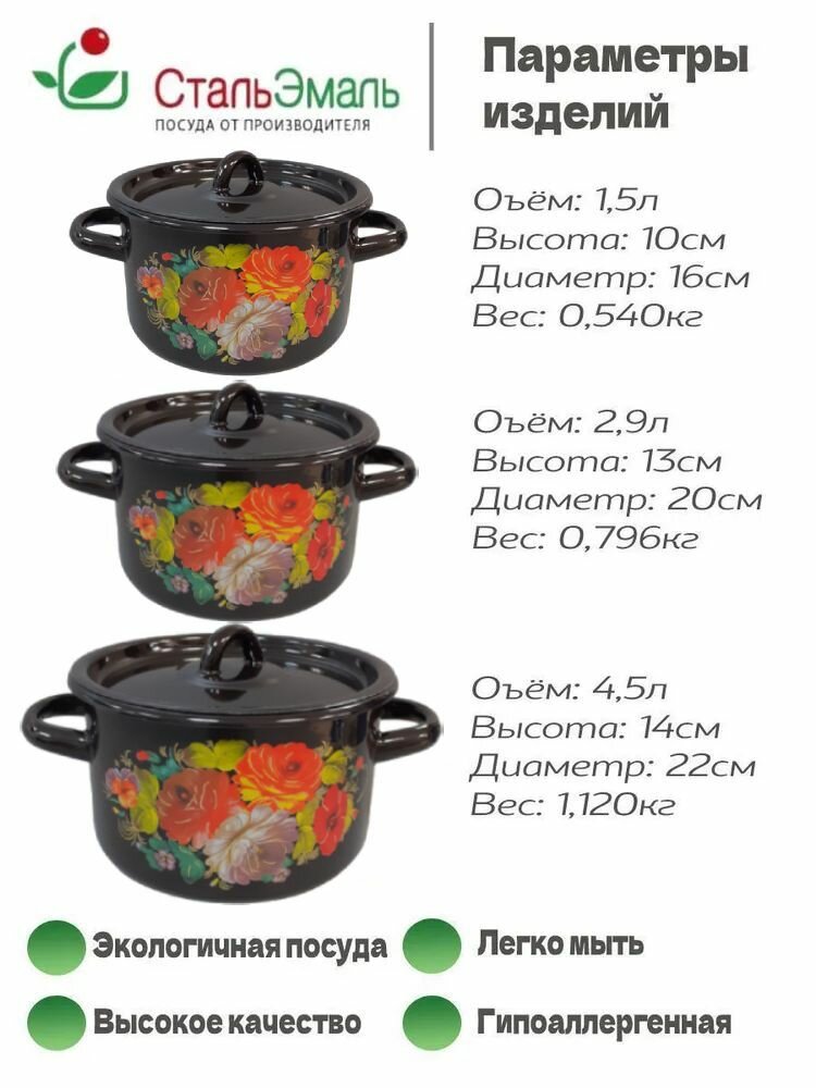 Набор кастрюль «Жостово», 3 предмета: 1,5 л, 2,9 л, 4,5 л, эмалированные крышки, индукция интересное: