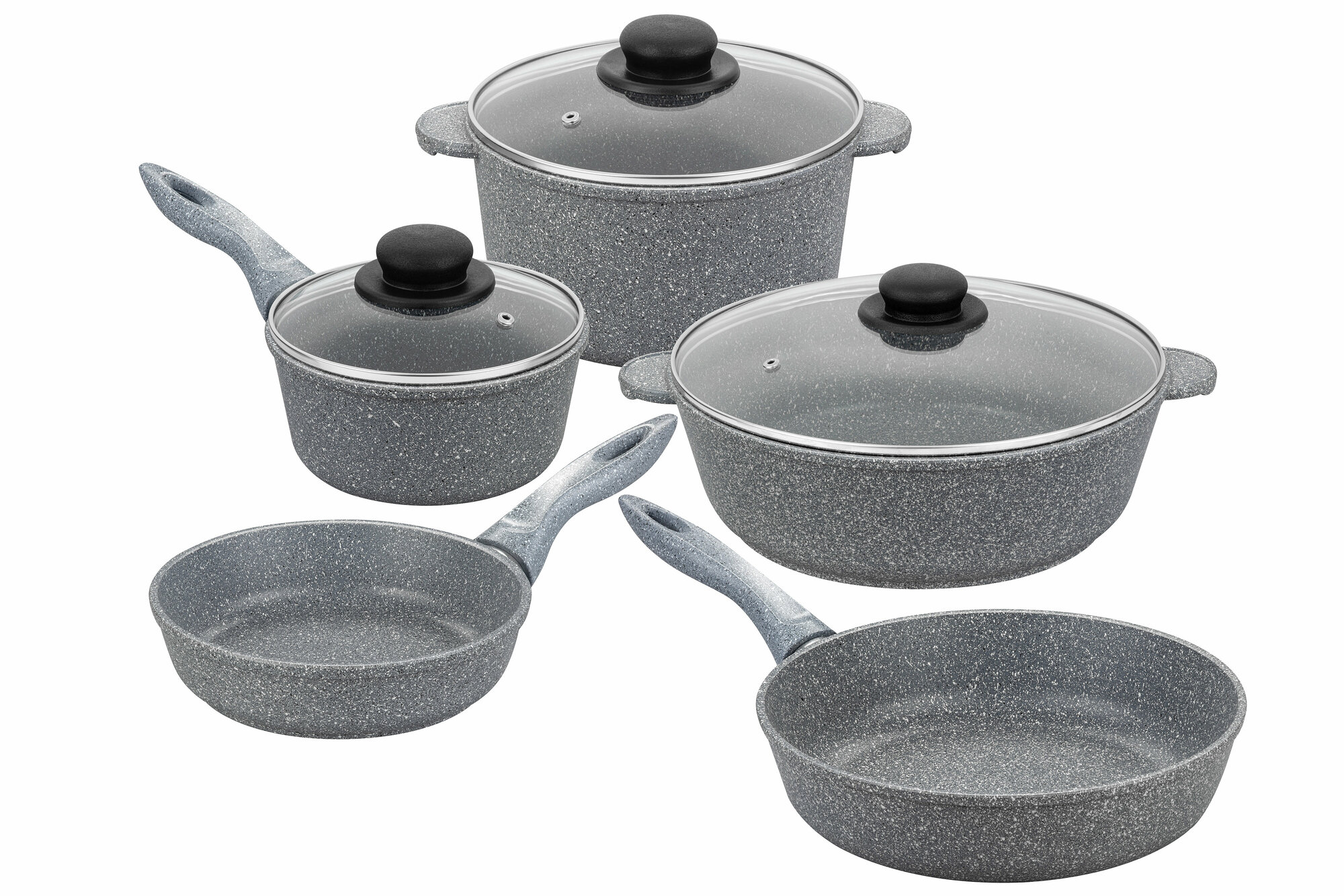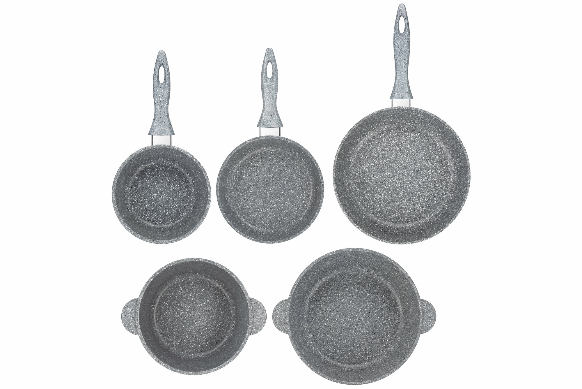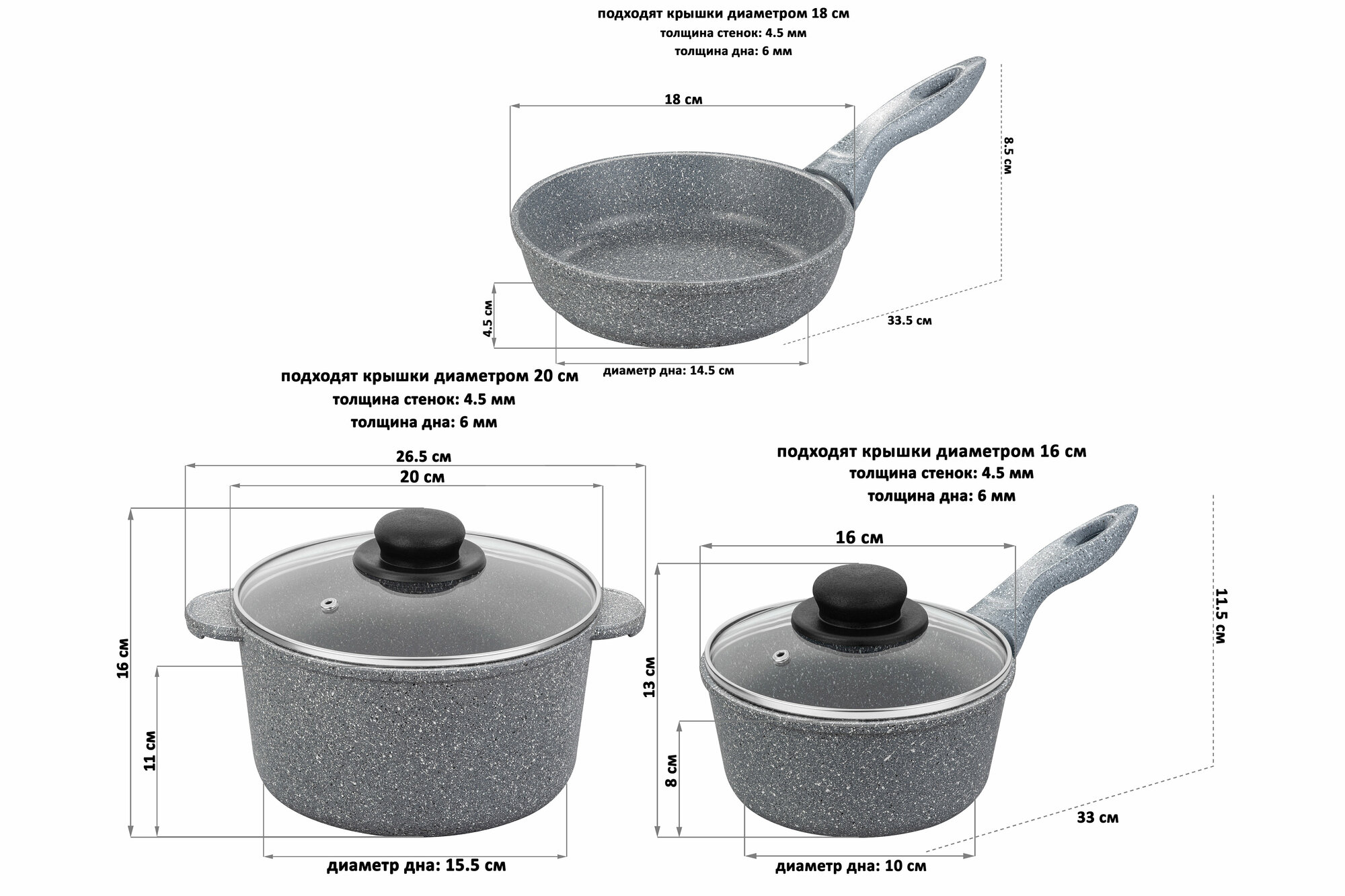 Набор 8 пр. Elan Gallery гармония вкуса Серый мрамор Сковороды глубокие 18см,26см с н/с ручками, Жаровня-сотейник 26см, Кастрюля 3л, Ковш 1,2 л+3кр. интересное: