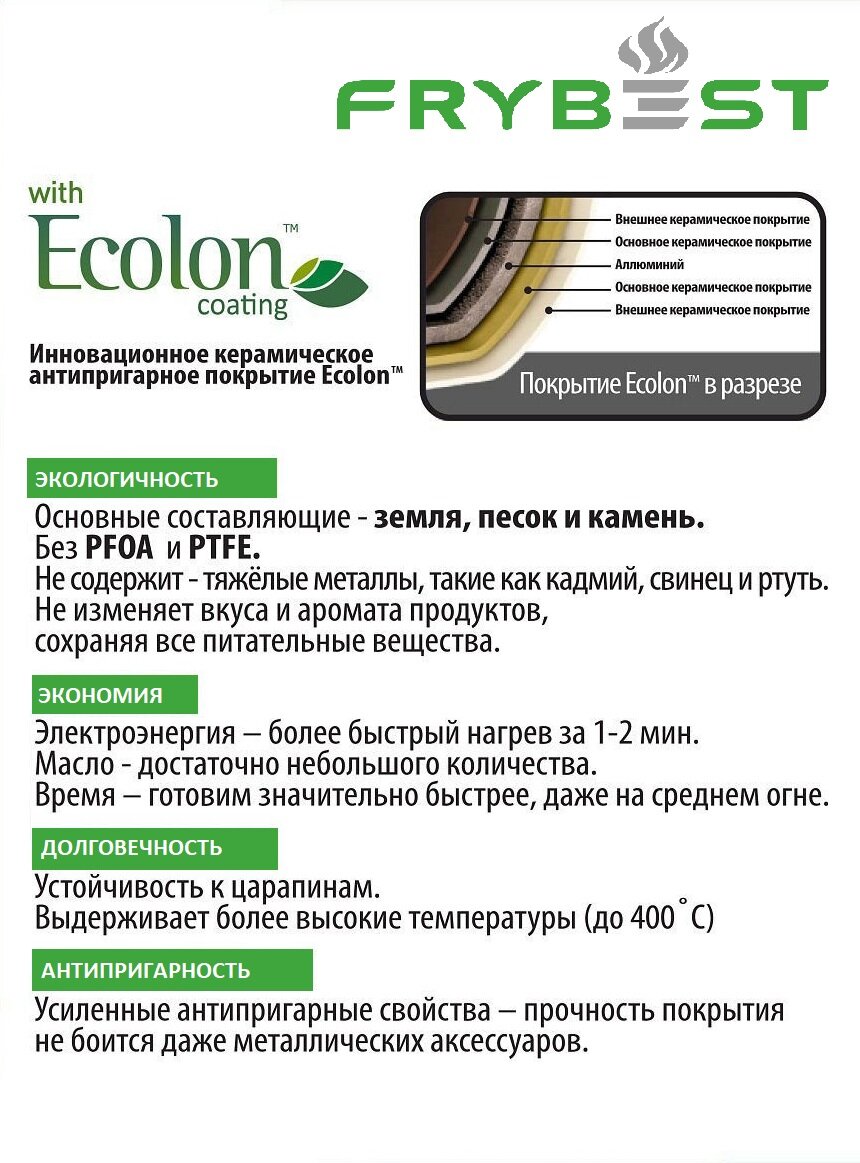 | Дополнительная информация | натуральное керамическое покрытие Ecolon, абсолютно безопасное |