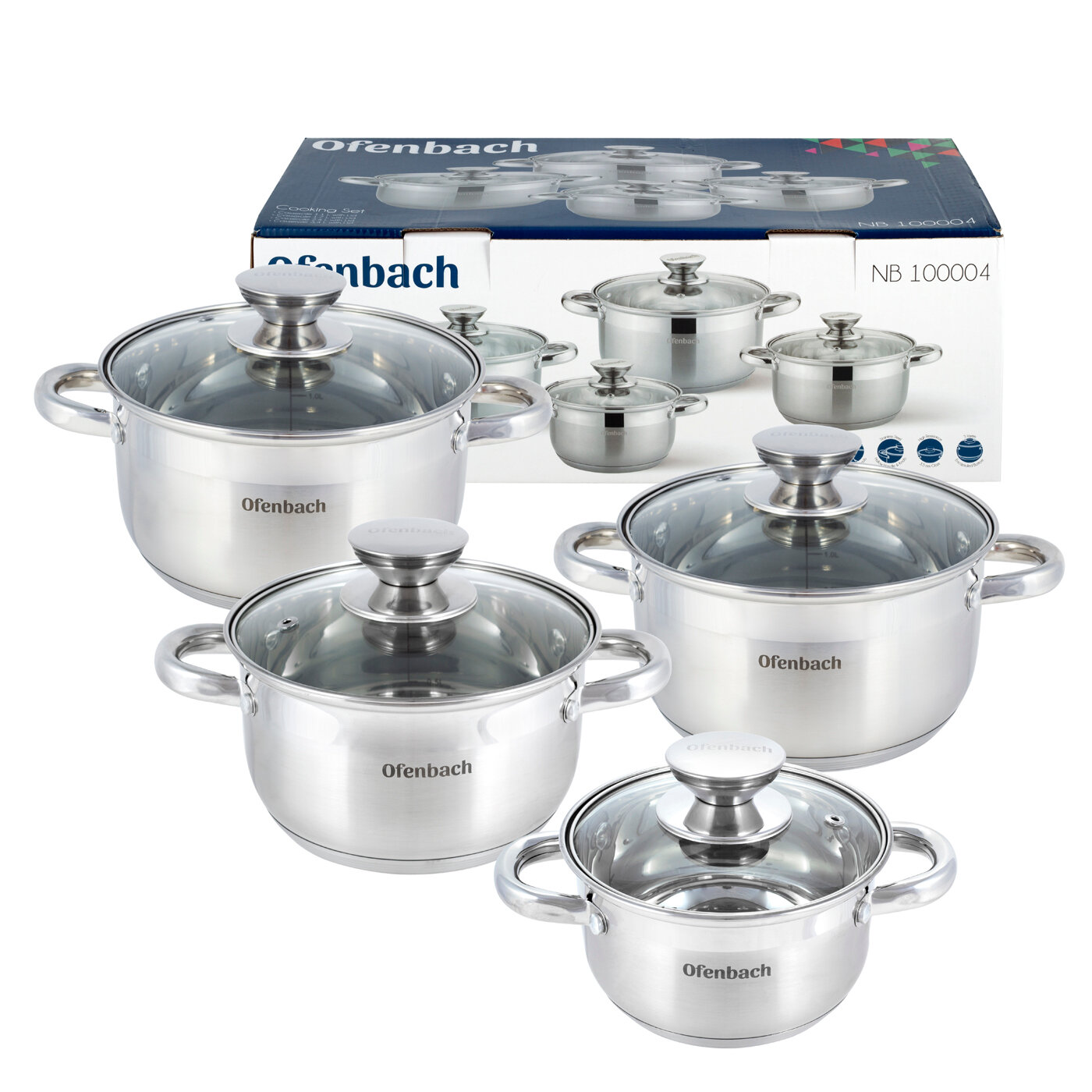 Набор кастрюль 8 пр. (14*8,5, 16*9,5, 18*10,5, 20*11,5) нерж.сталь 928340 интересное: