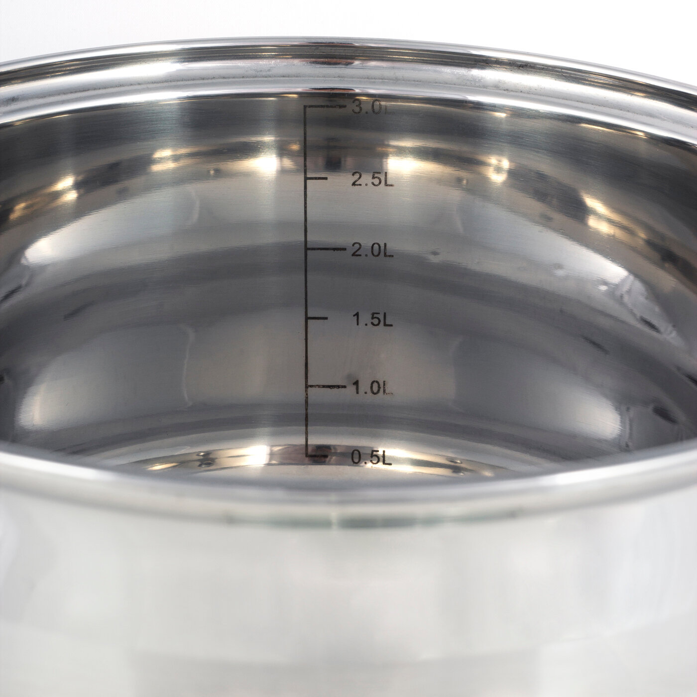 | Дополнительная информация | высота стенок: 8.5 см, 9.5 см, 10.5 см, 11.5 см; тип дна: 5-ти слойное; мерная шкала; крышки с отверстием для выхода пара;перед первым использованием промыть; не использовать для чистки абразивные или едкие вещества; после каждого использования дождаться охлаждения изделия, затем тщательно вымыть и просушить; не подвергать изделия резким изменениям температуры; не оставлять пустую посуду на огне; избегать попадания пламени на ручки и боковые стенки посуды; не использовать острые металлические аксессуары |