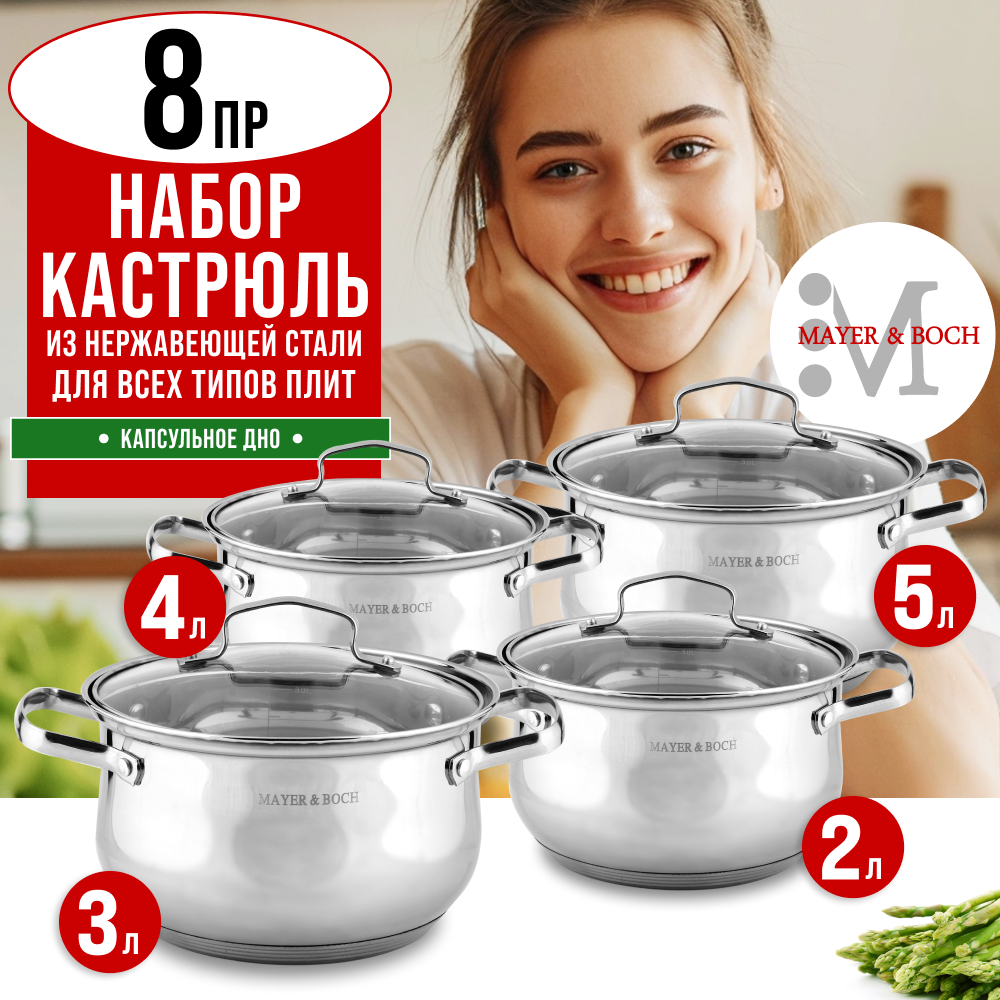 Набор посуды MAYER&BOCH 8 предметов 0,75 л, 1 л, 1,5 л, 2 л, 2 л