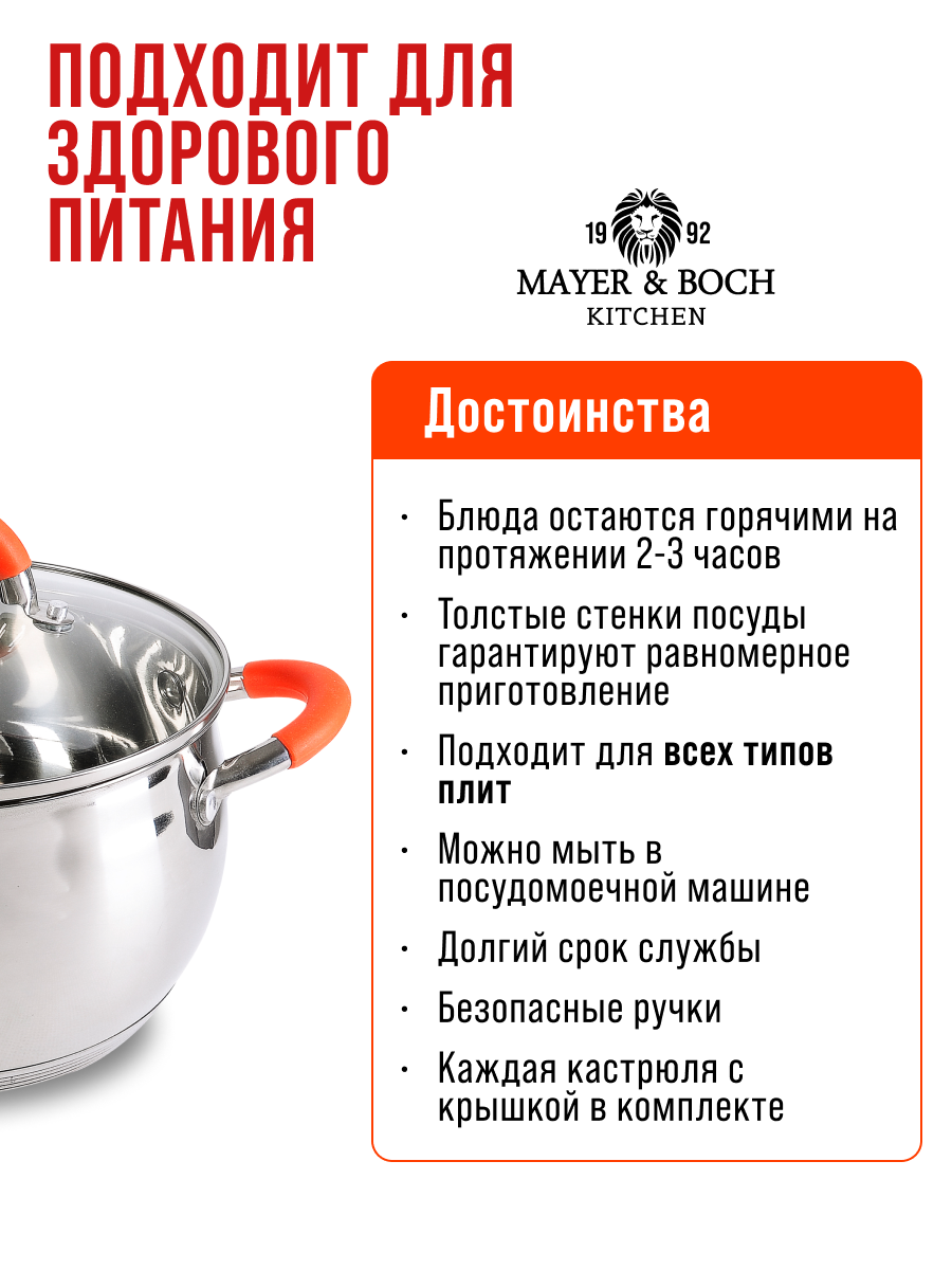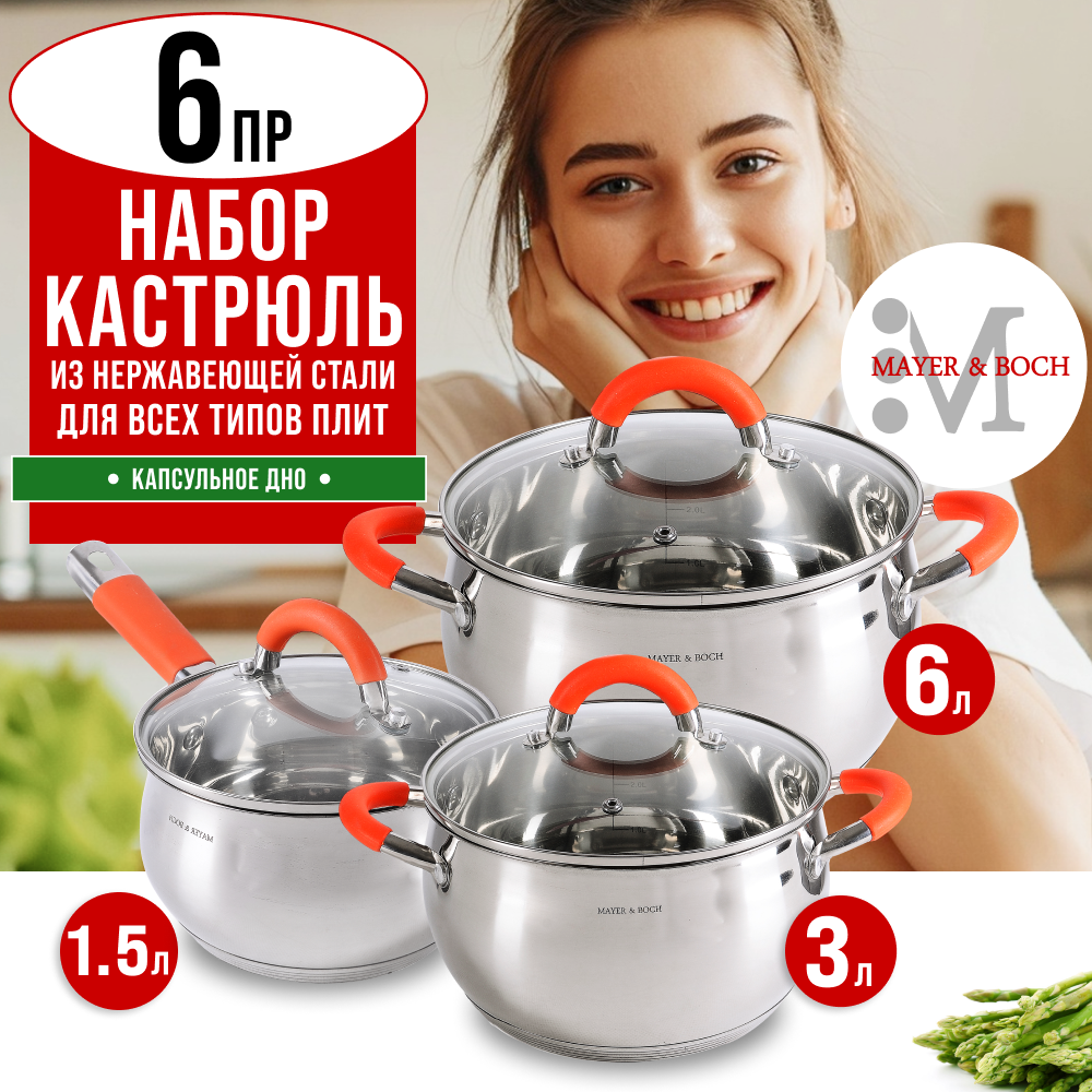 Ниже Вы можете прочитать отзывы на Набор кастрюль из нержавеющей стали с крышками MAYER&BOCH 30994, ознакомится с подробными характеристиками, посмотреть интересные обзоры и фотографии на Набор кастрюль из нержавеющей стали с крышками MAYER&BOCH 30994.