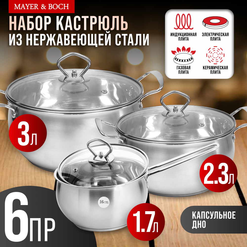 Набор кастрюль MAYER&BOCH из нержавеющей стали с крышками