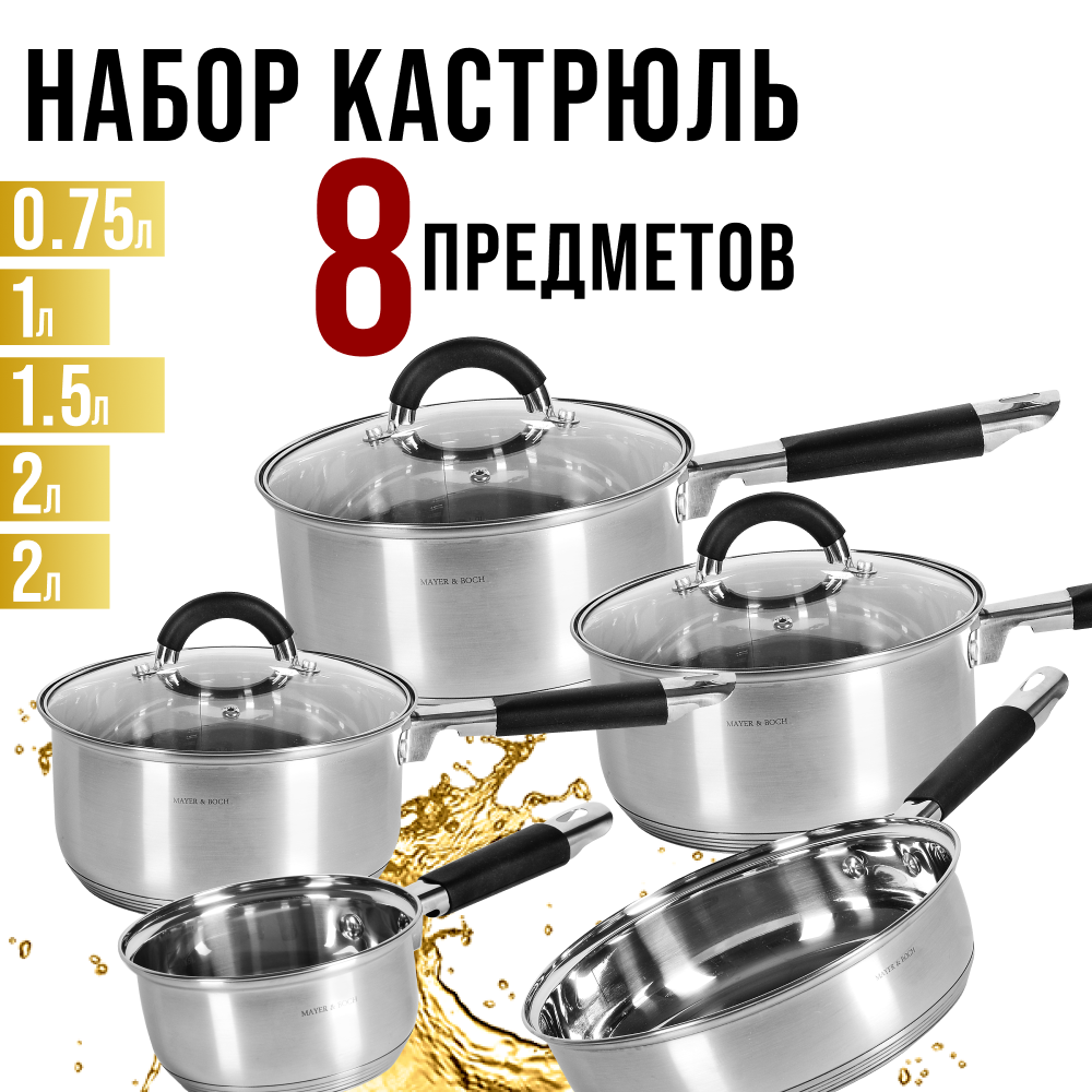 Купить Набор посуды 8 предметов 0,75 л 1 л 1,5 л 2 л 2 л MAYER&BOCH 30997