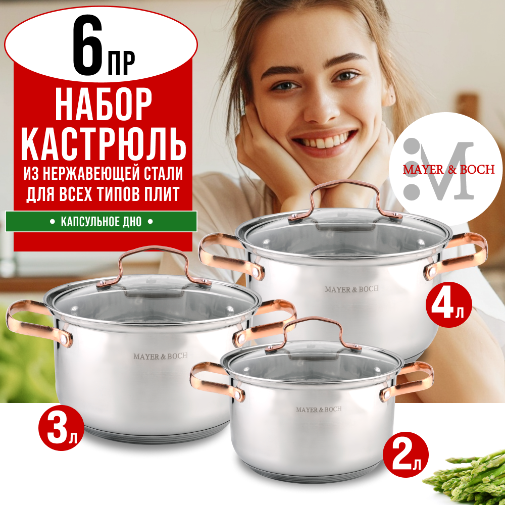 Купить Набор кастрюль с крышками MAYER&BOCH 40457 нержавеющая сталь, 2,0 л., 3,0 л., 4,0 л.