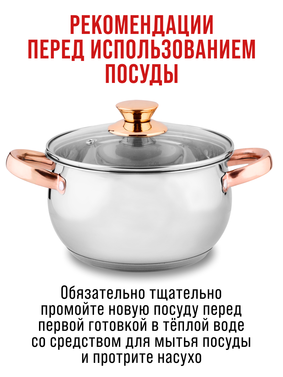 | Комплектация | Кастрюля с крышкой большая: объем 4 л, диаметр корпуса 20 см, диаметр дна 16 см, длина с ручками 30 см, высота борта 12 см, высота с крышкой 16,5 см, вес 1,105 кг. Кастрюля с крышкой средняя: объем 3 л, диаметр корпуса 18 см, диаметр дна 14,5 см, длина с ручками 28,5 см, высота борта 11 см, высота с крышкой 15,5 см, вес 915 г. Кастрюля с крышкой малая: объем 2 л, диаметр корпуса 16 см, диаметр дна 12,5 см, длина с ручками 25,5 см, высота борта 10 см, высота с крышкой 14,5 см, вес 711 г. |