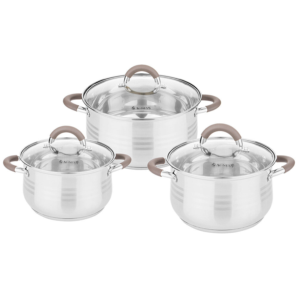 Купить Набор кастрюль Agness со стекл.крышками 6 пр.1,7/2,6/3,5 л., размер 16x9,5/18x11,5/20x12.5 см (937-517)