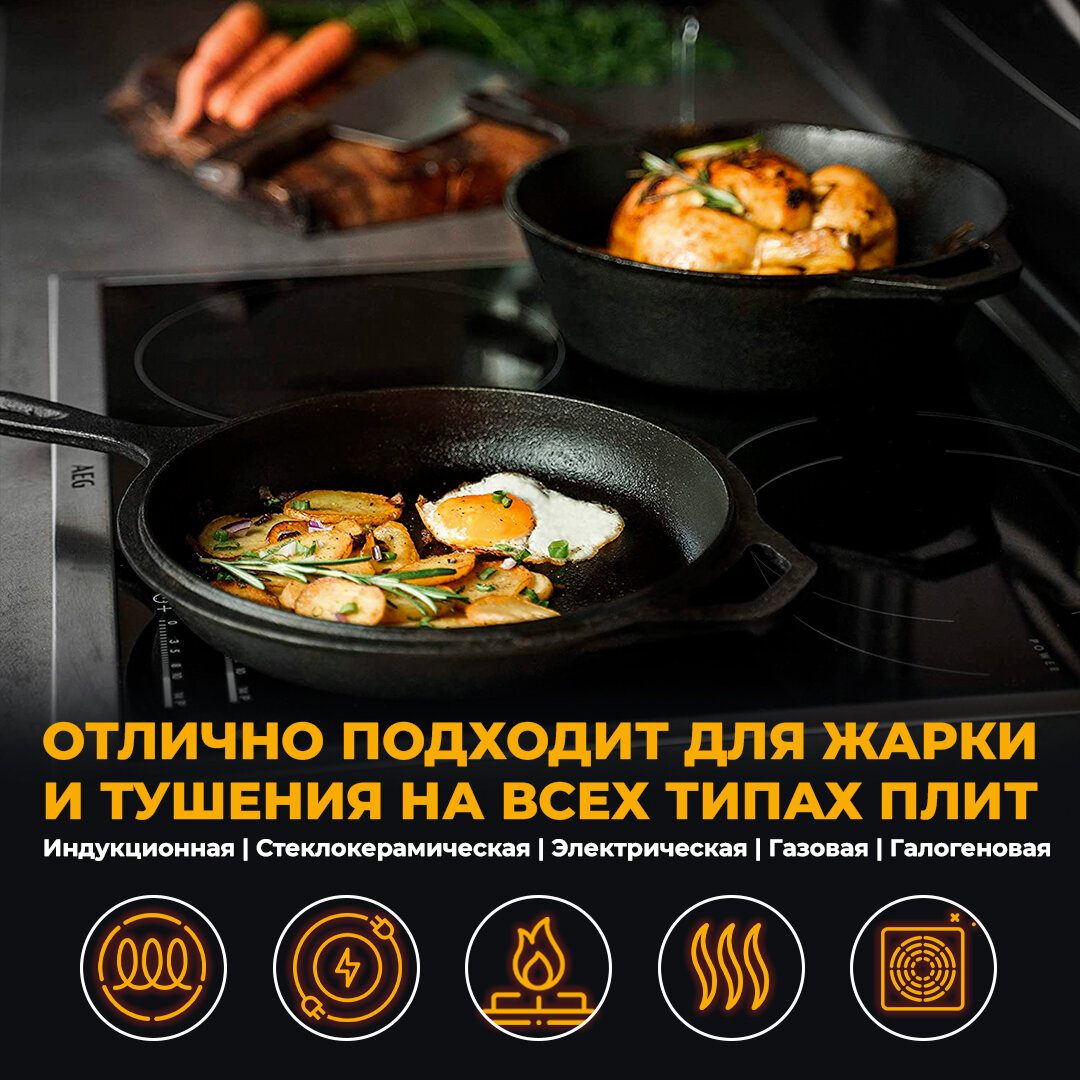 Набор сковородок Oberhof Gusseisen GP-02 из закаленного чугуна с толстым дном для индукционной плиты, 25 см интересное: