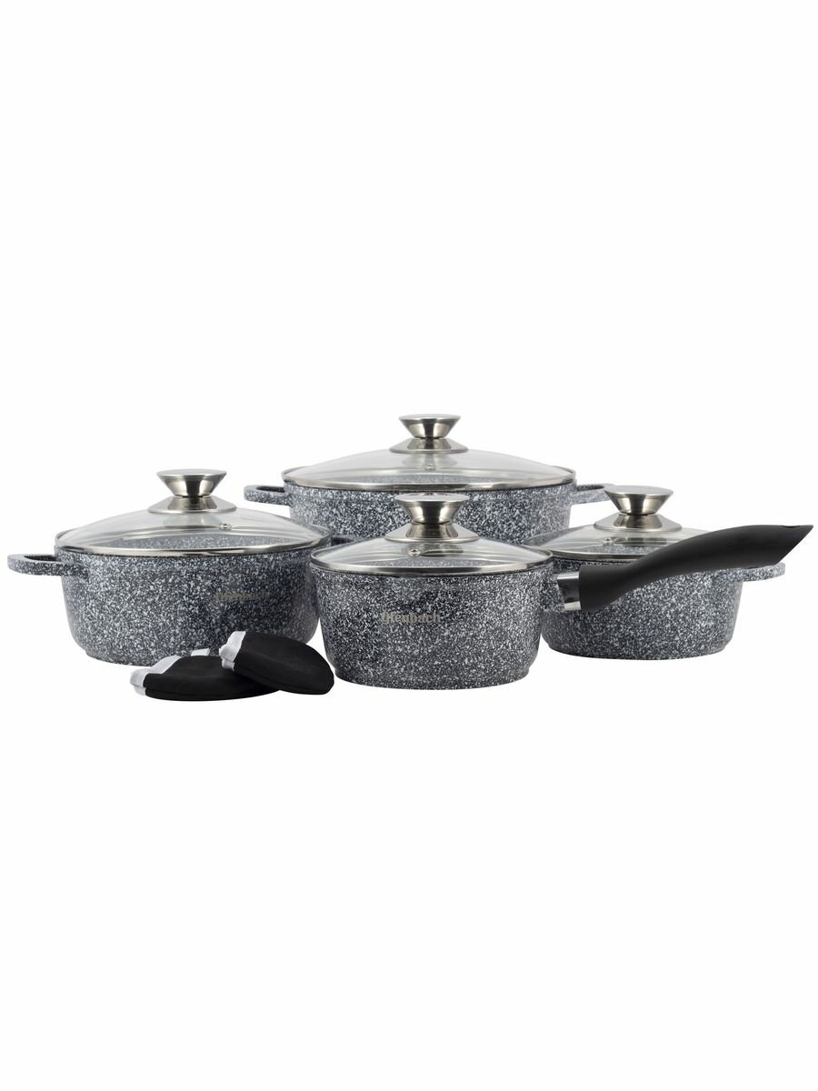 Набор посуды 9 предметов Ofenbach NB 100505 ковш 16 см; кастрюли 16 см; 20 см; 24 см; прихватки 2 шт. (серый)