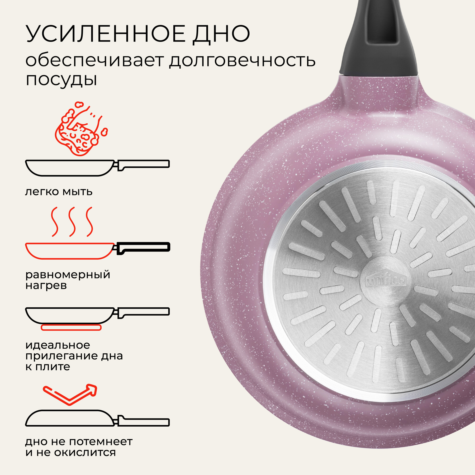 СохранитьСковорода универсальная Unifico Ispirato lilla (лиловый камень) 24 см интересное: