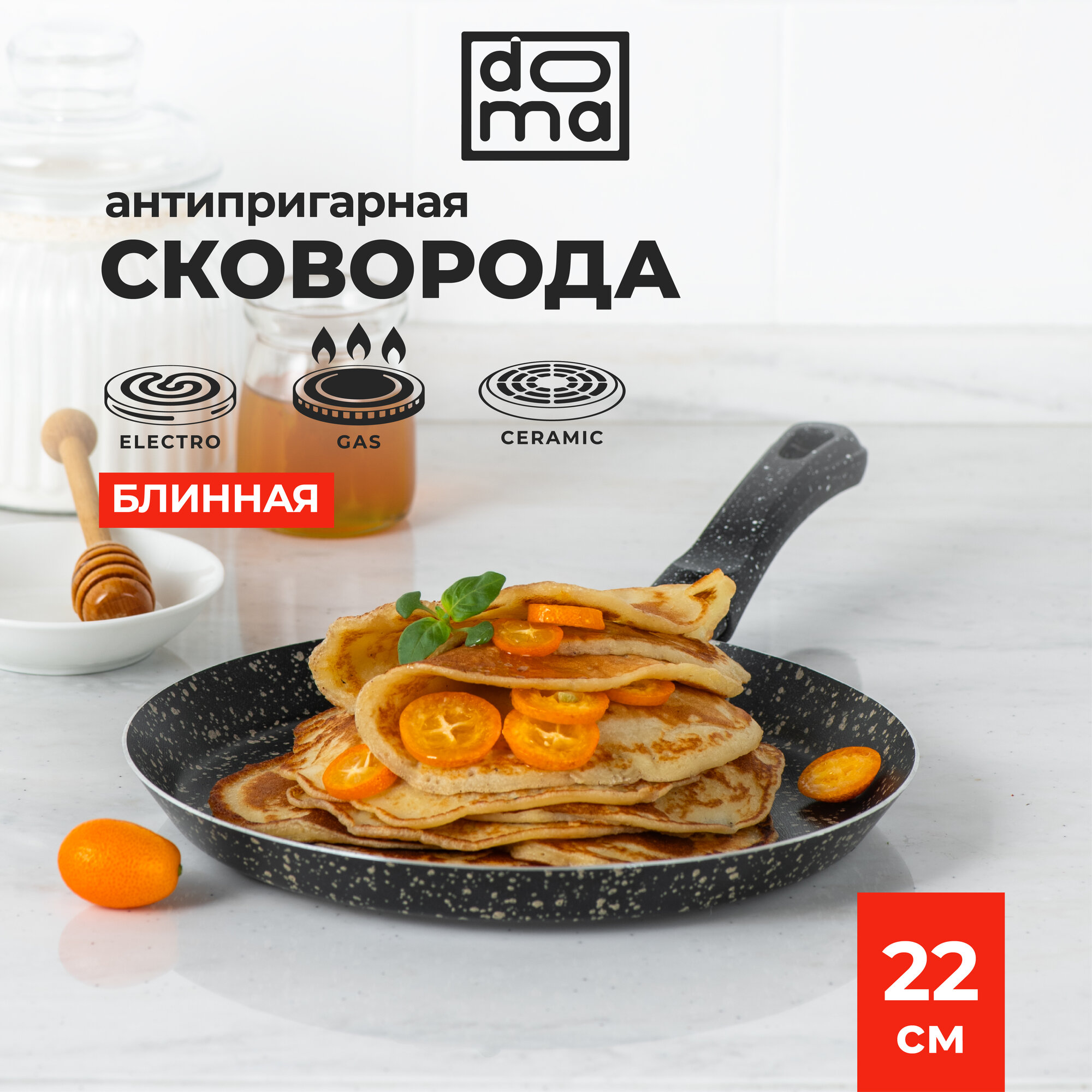 Купить Сковорода блинная с антипригарным покрытием Doma Constant Fine 22 см.