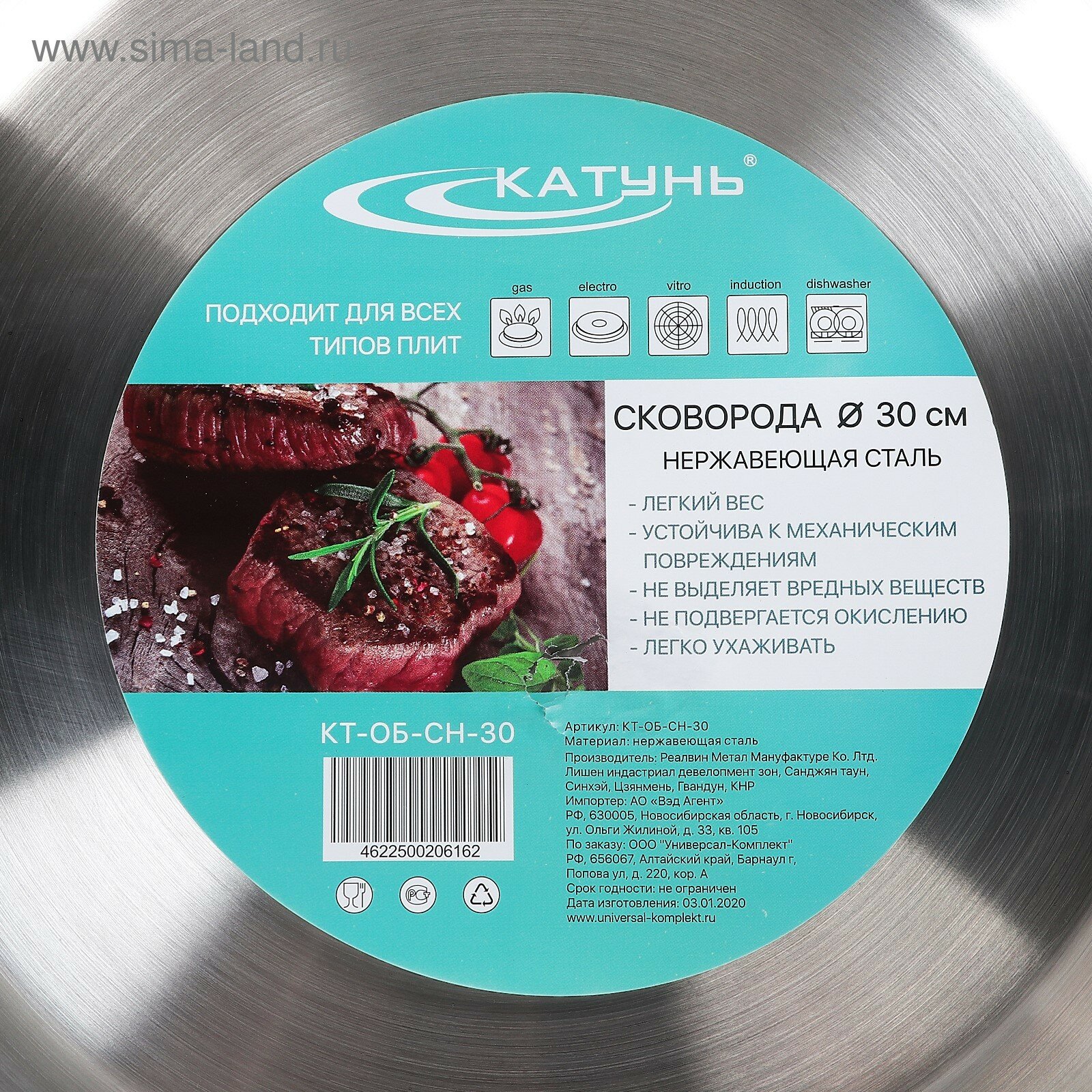 Сковорода "Катунь Общепит", диаметр 26см, для индукционных плит, нержавеющая сталь