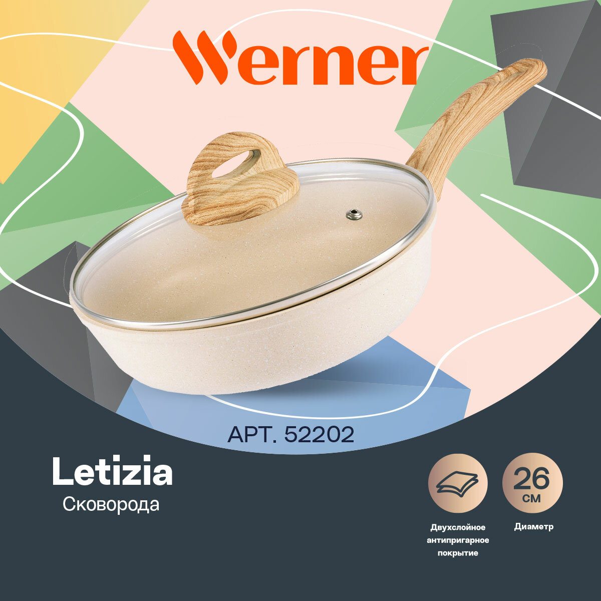Сковорода Werner LETIZIA 26,0х6,9 см со стеклянной крышкой