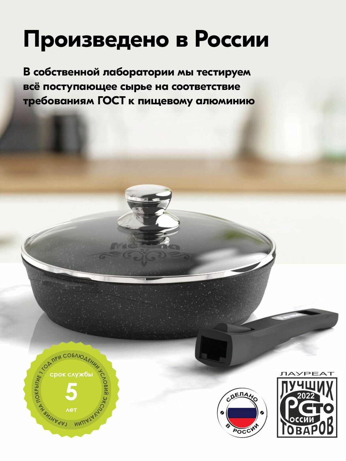 Купить Сковорода Мечта 28 см Гранит с антипригарным покрытием со съемной ручкой и крышкой, НЕ индукционная