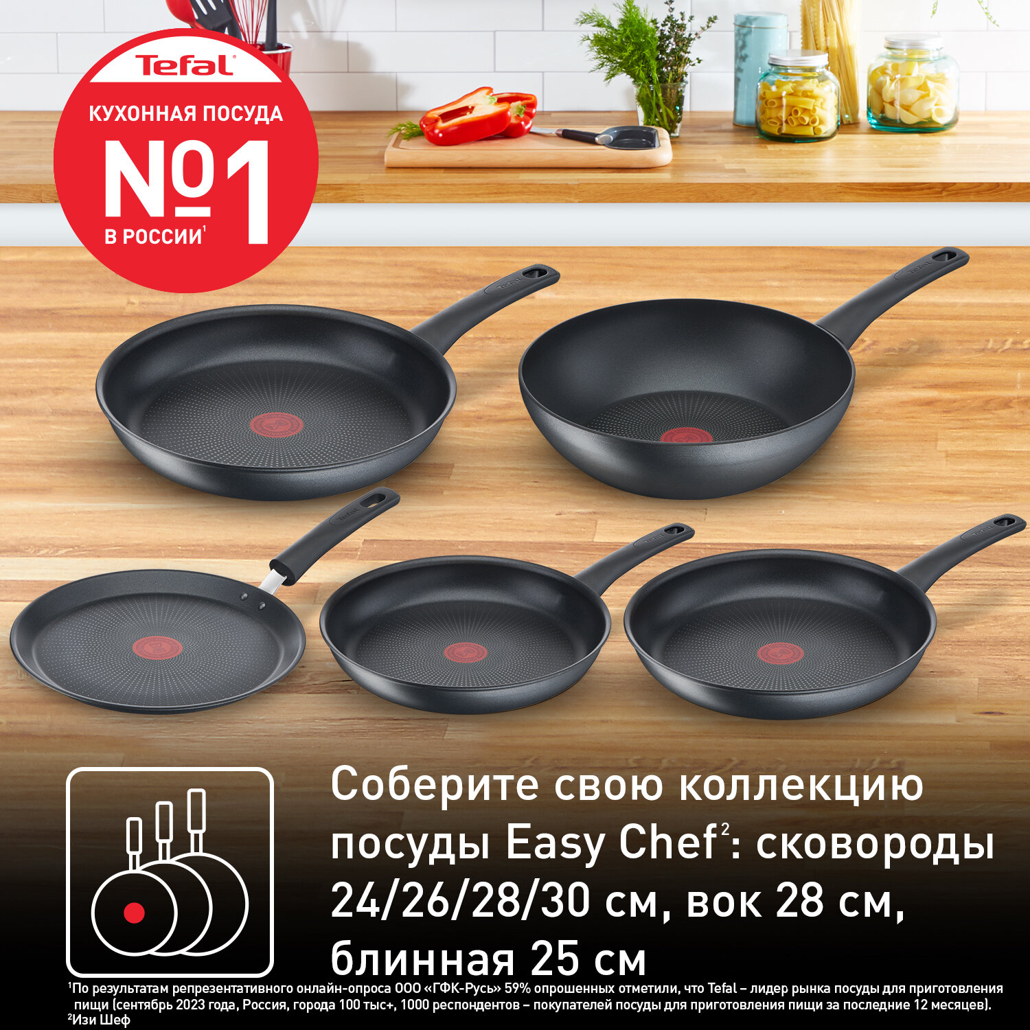 Сковорода Tefal Easy Chef G2700423 24 см, с антипригарным покрытием, подходит для индукции, сделано во Франции