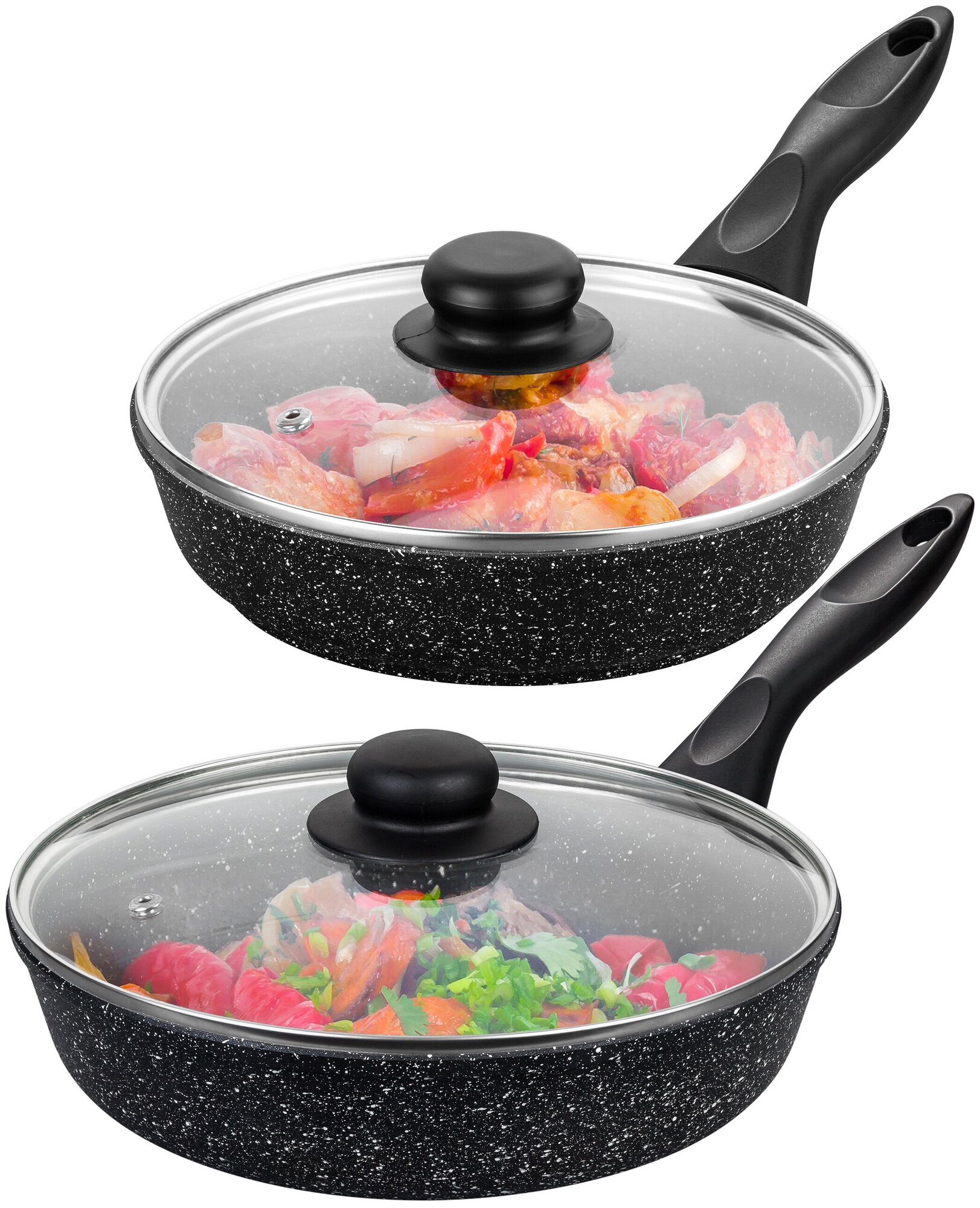 Купить Набор 4 предмета - Сковорода глубокая 20 см, 24 см с крышками Elan Gallery гармония вкуса Черный мрамор, с несъёмными ручками