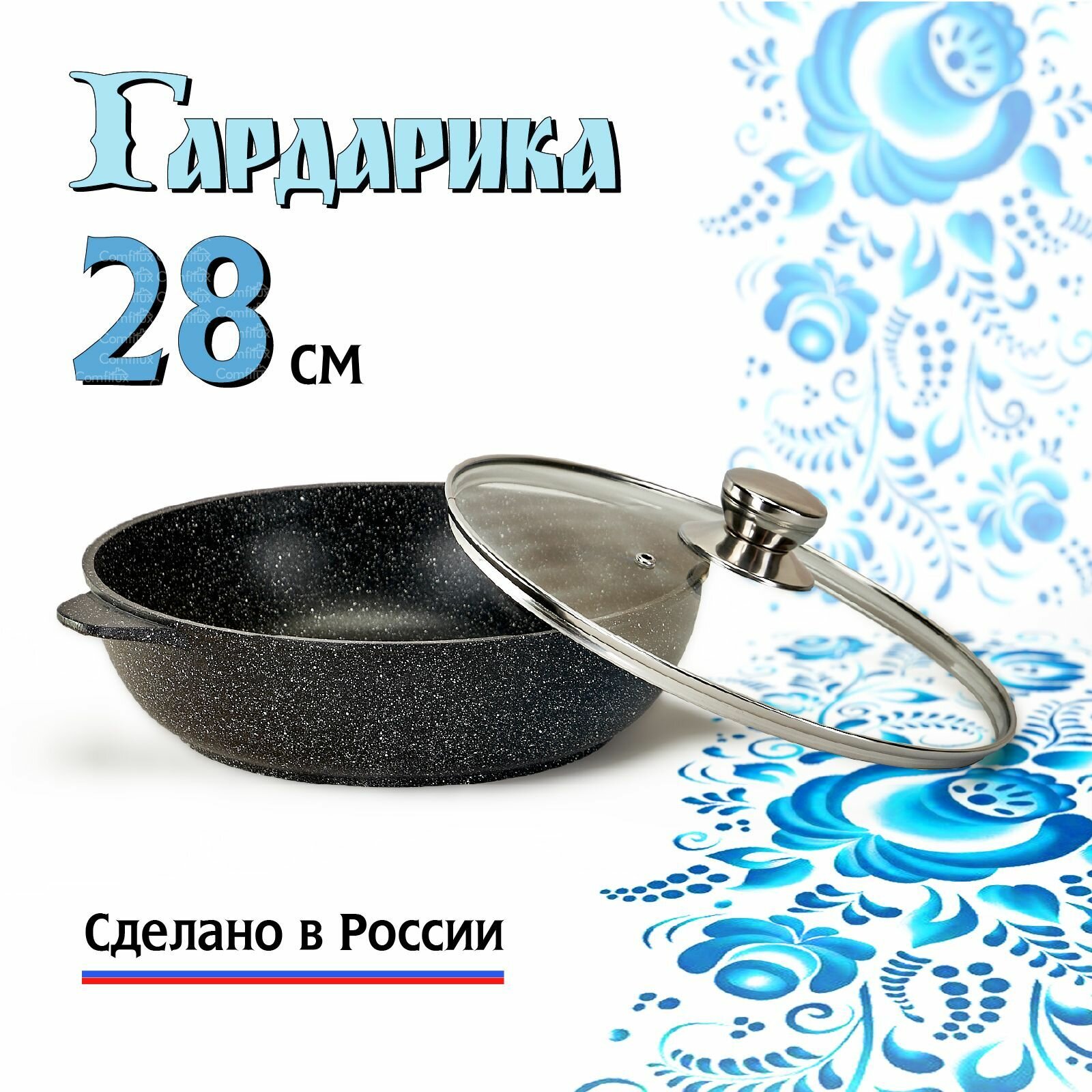 Сковорода с крышкой 28 см литая с усиленным антипригарным покрытием, Гардарика Орион