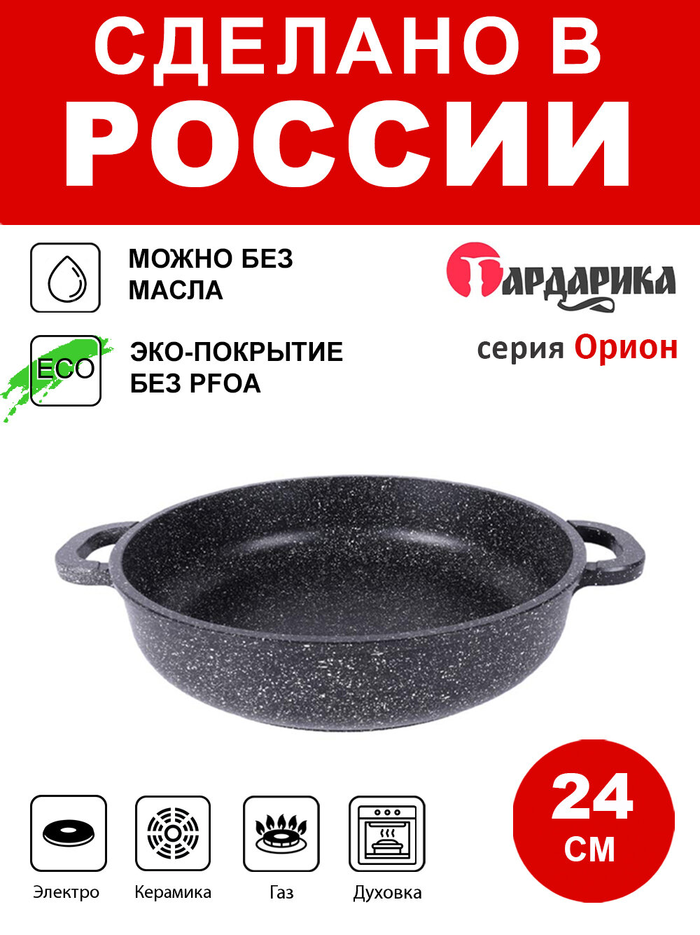 Жаровня 24 см литая с усиленным антипригарным покрытием, Гардарика Орион