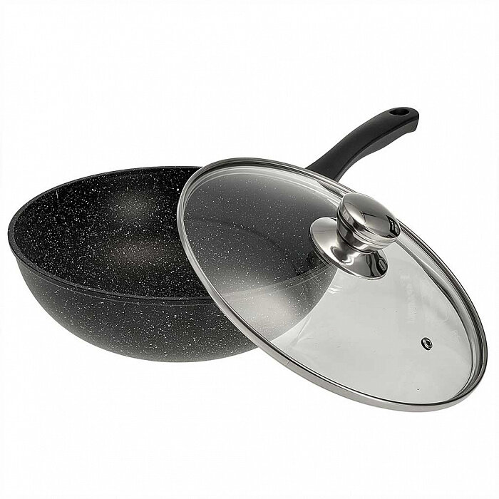 Вок с антипригарным покрытием и стеклянной крышкой ТМ Гардарика серия Орион, 28 см (3)
