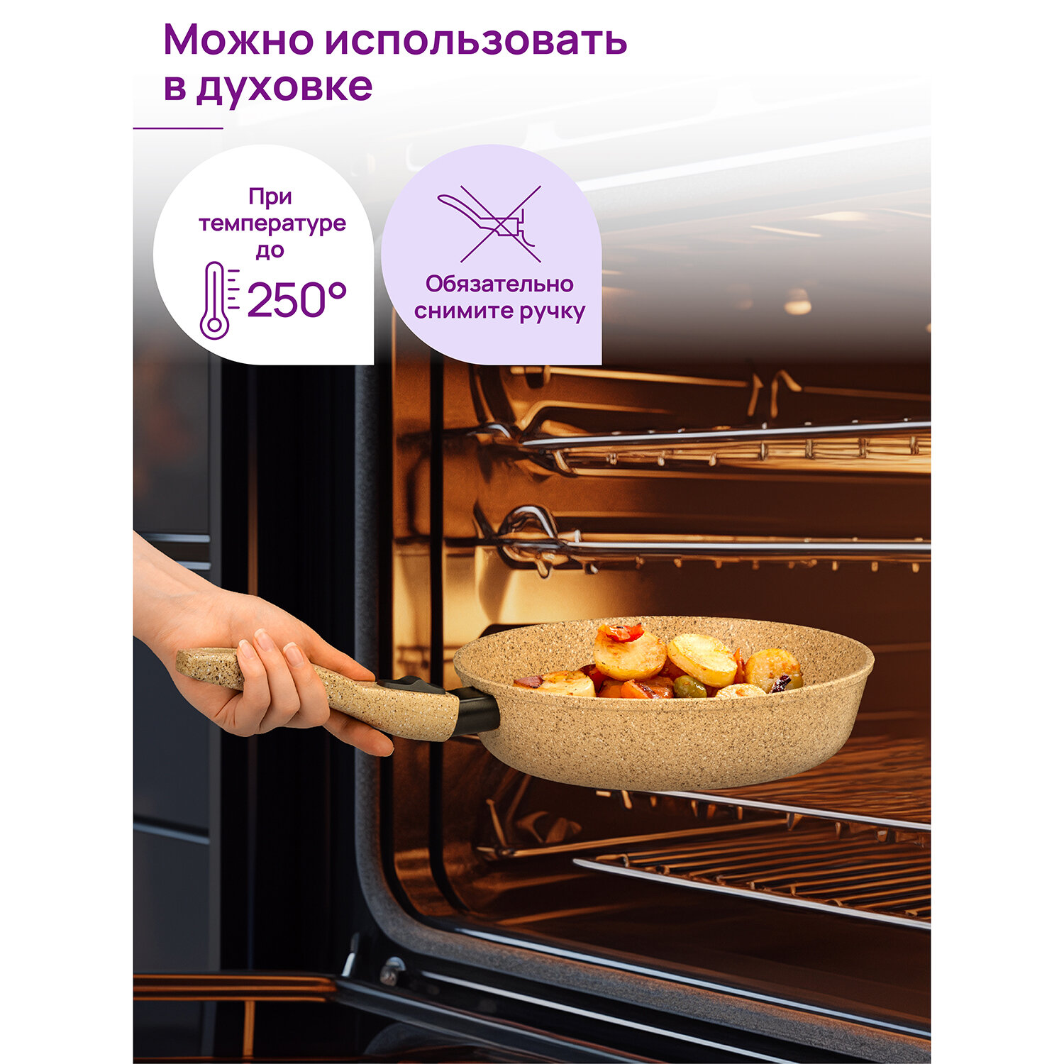 | Особенности | использование в духовке / мытье в посудомоечной машине / с крышкой / съемная ручка |