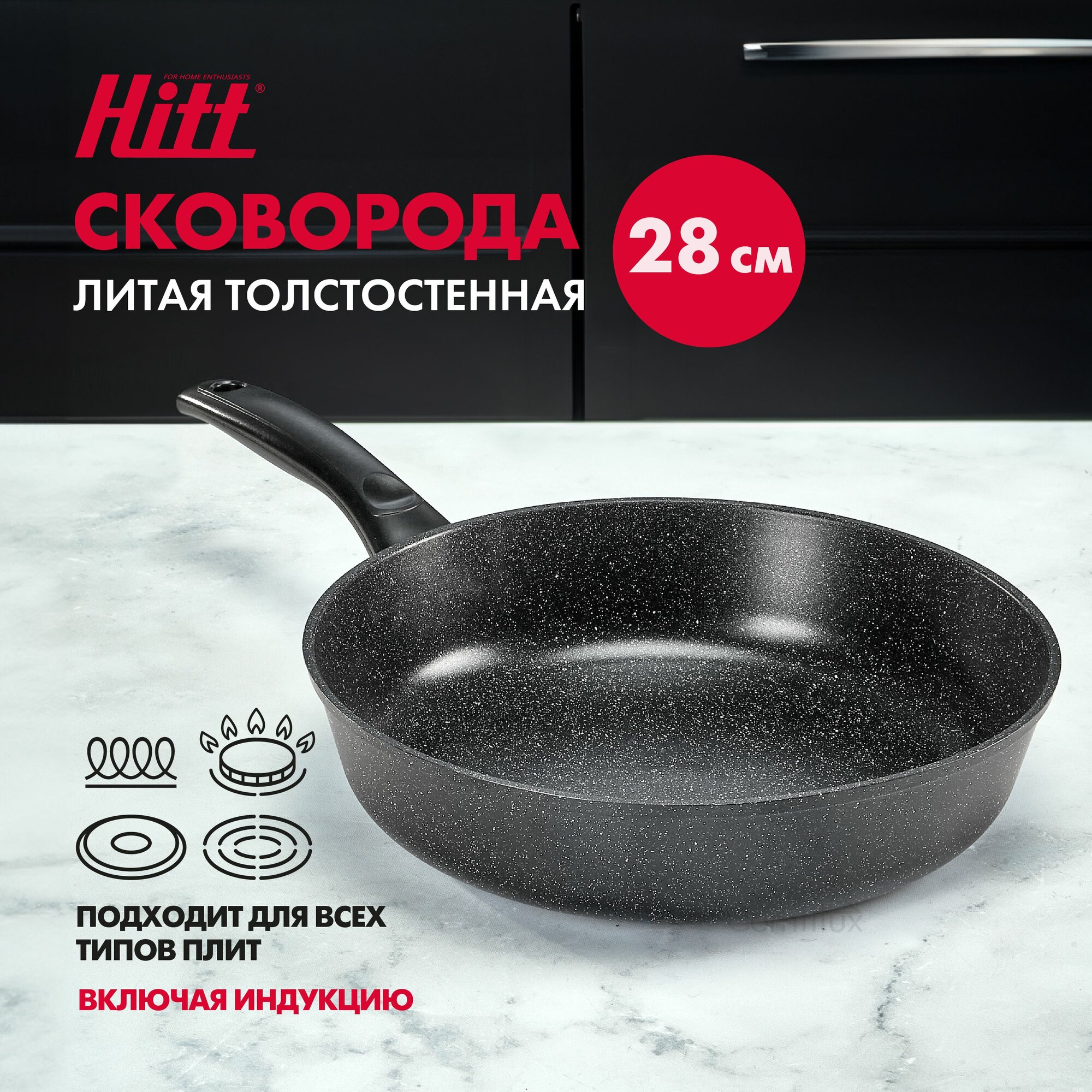 Сковорода для индукционной плиты, литая, глубокая с антипригарным покрытием, 28 см, Hitt Cookin Black интересное: