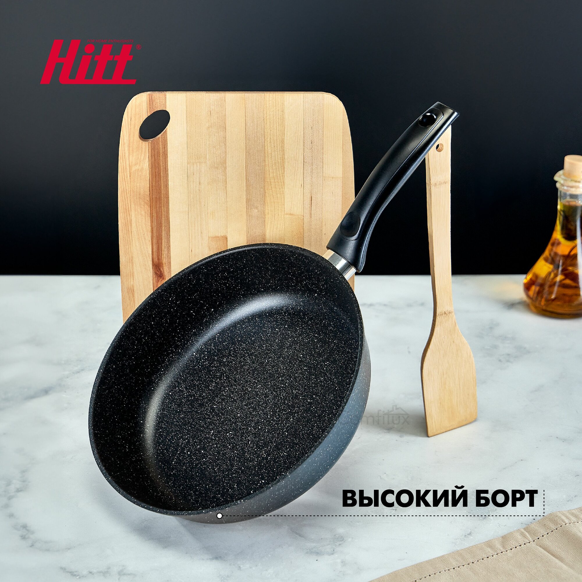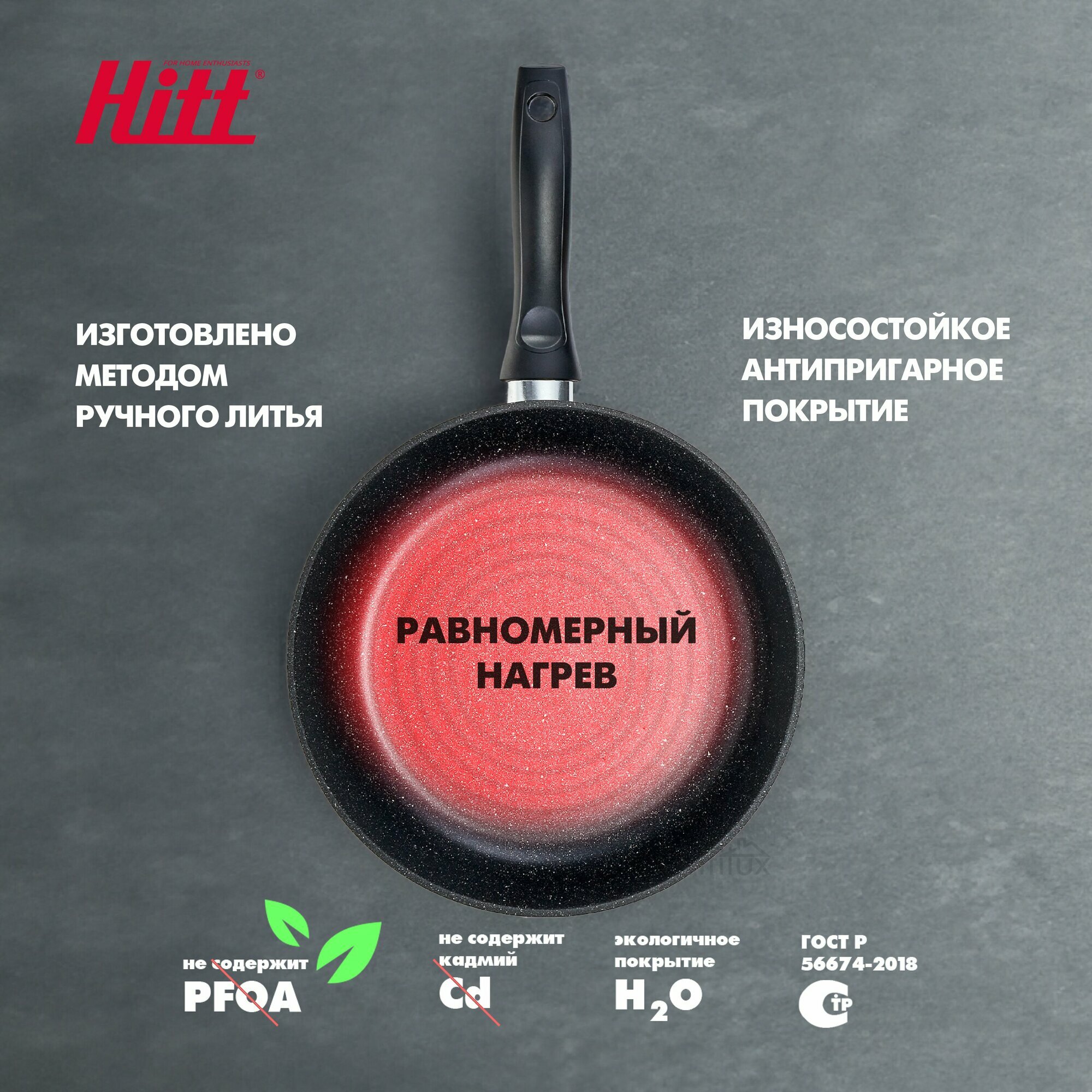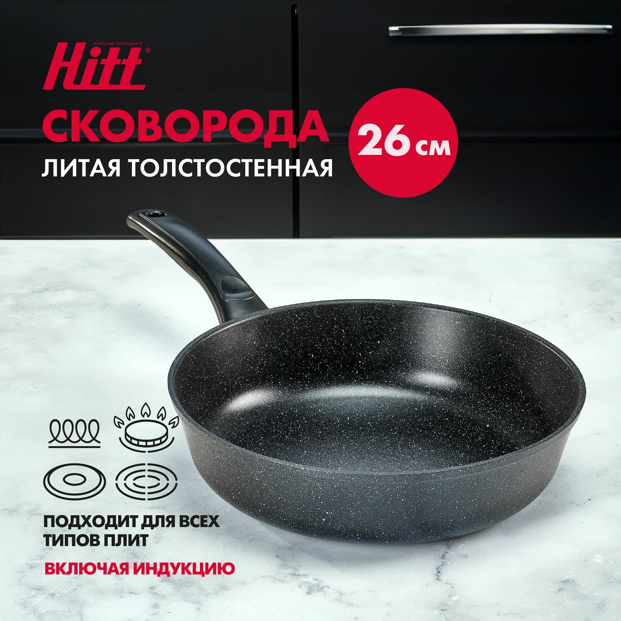 Сковорода для индукционной плиты, литая, глубокая с антипригарным покрытием, 26 см, Hitt Cookin Black интересное:
