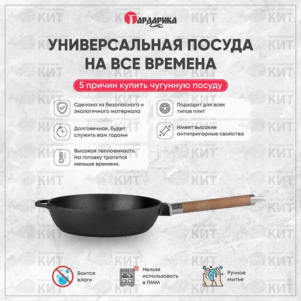 Сковорода чугунная для индукционных плит со съёмной ручкой гардарика 22 см 0122 гардарика