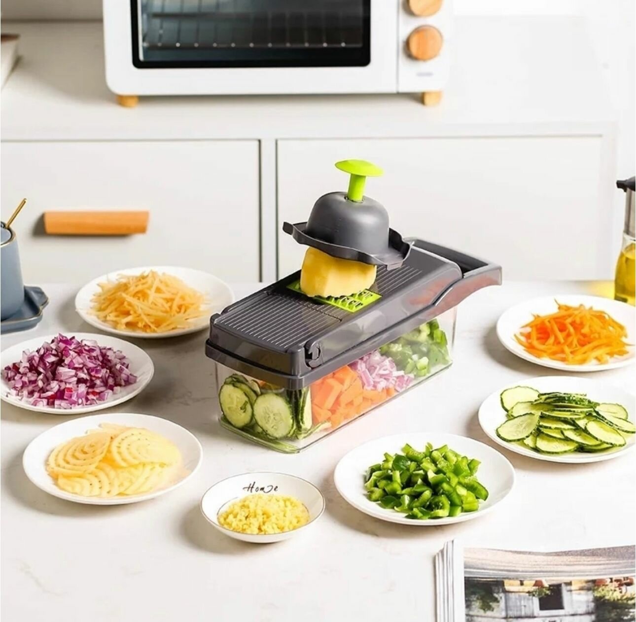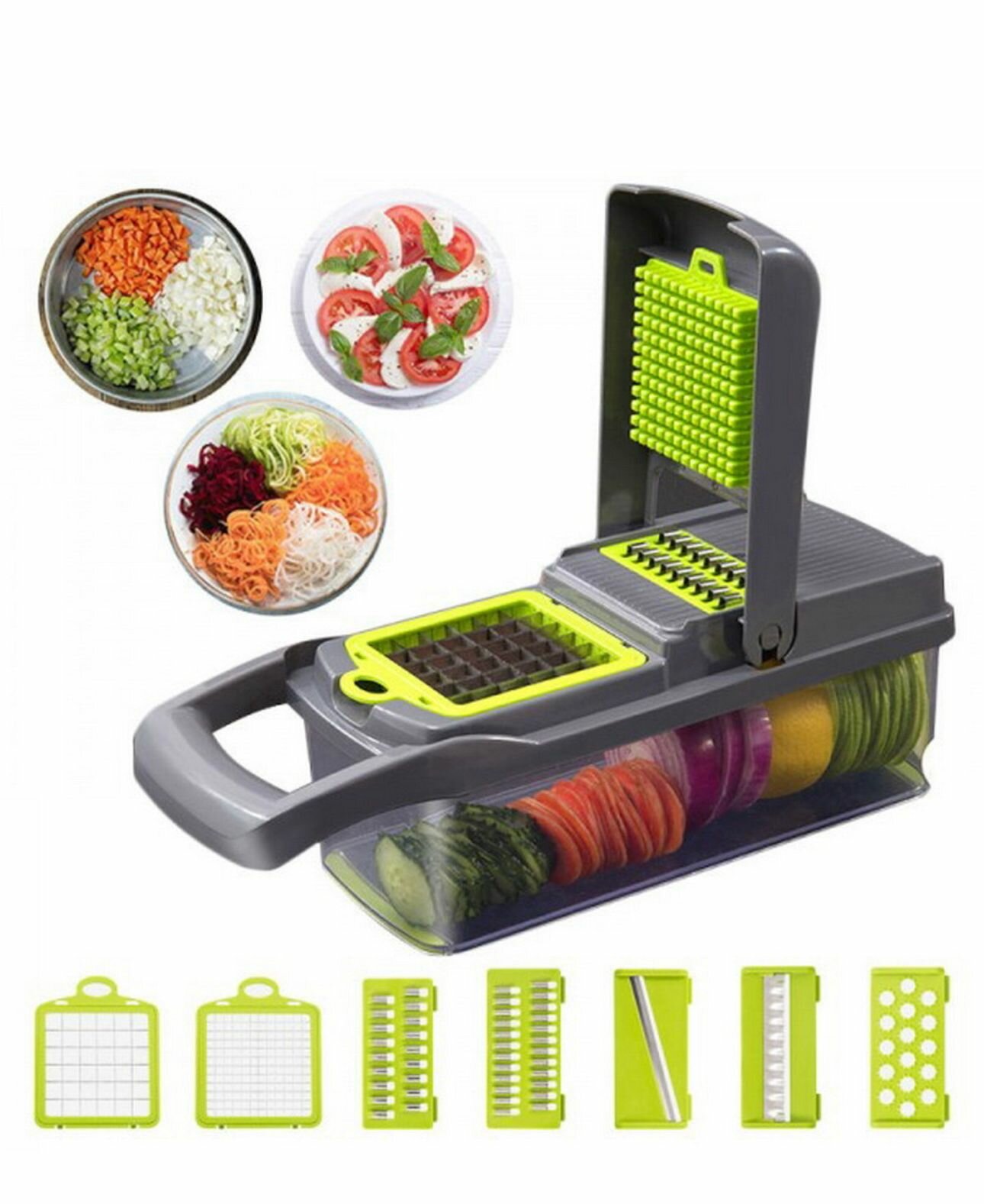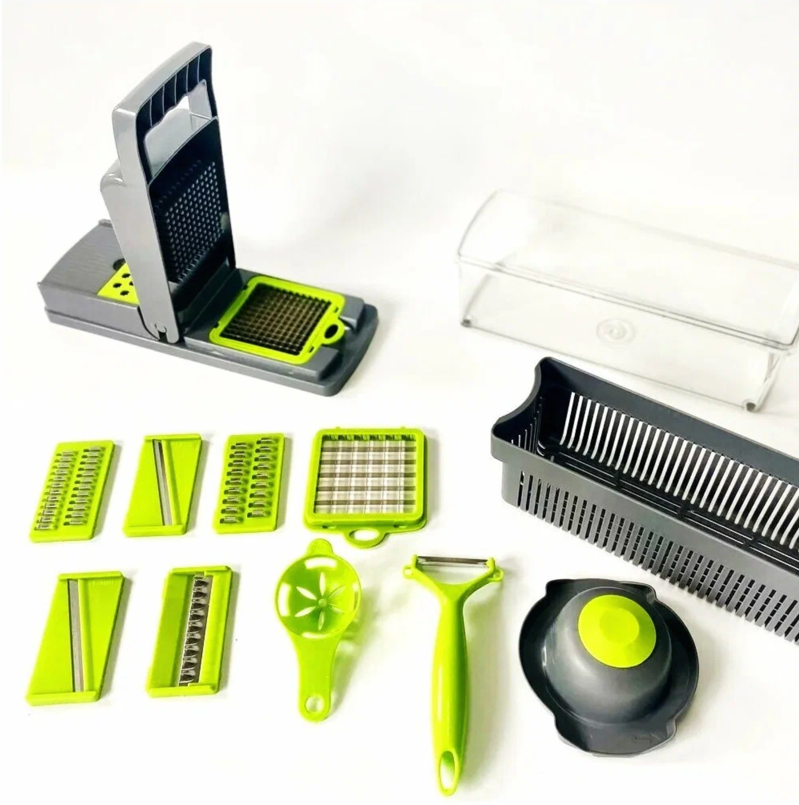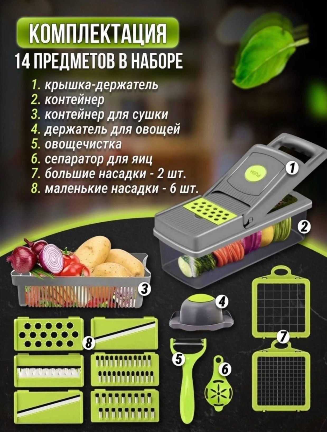 Многофункциональная овощерезка 14 в 1/ измельчитель с контейнером и набором насадок/ дуршлаг