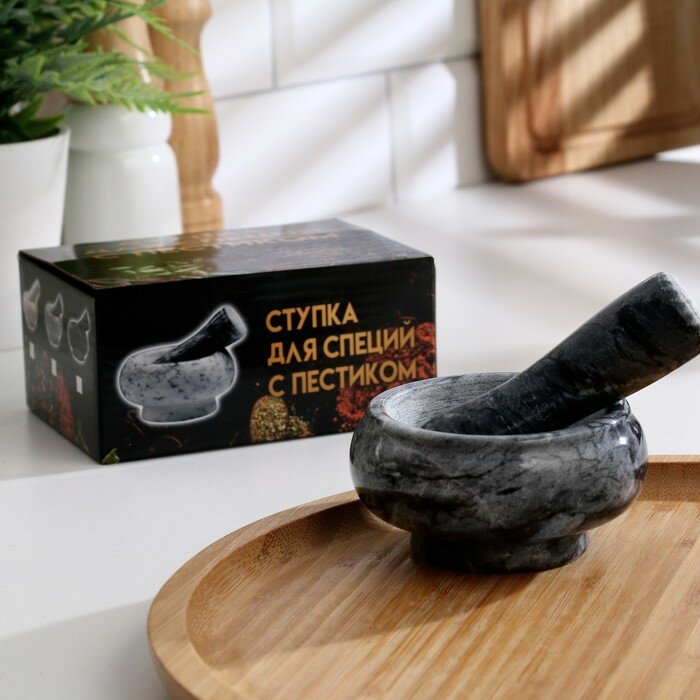 Ступка с пестиком, 75 мл, 5 см, камень, чёрная