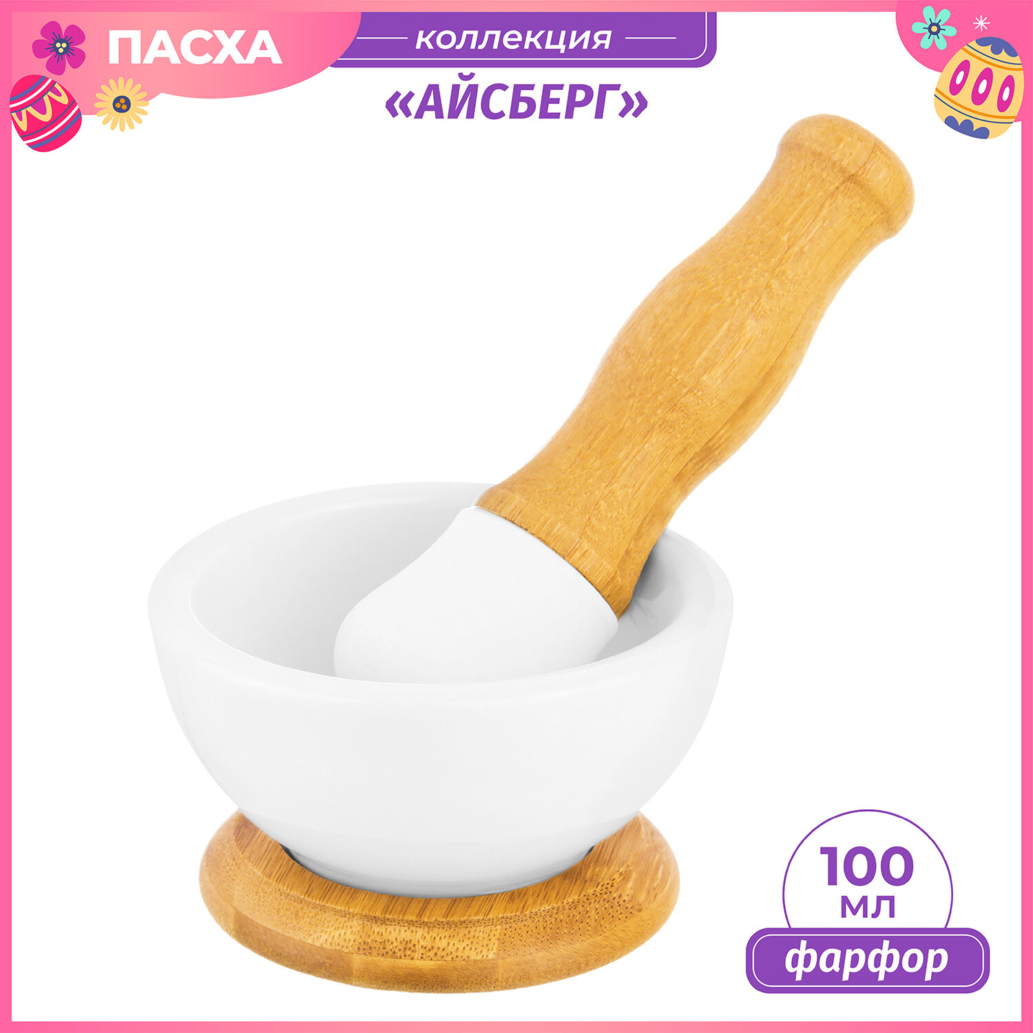 Купить Ступка 9х9х5,5 см 100 мл Elan Gallery Айсберг с пестиком на деревянной подставке