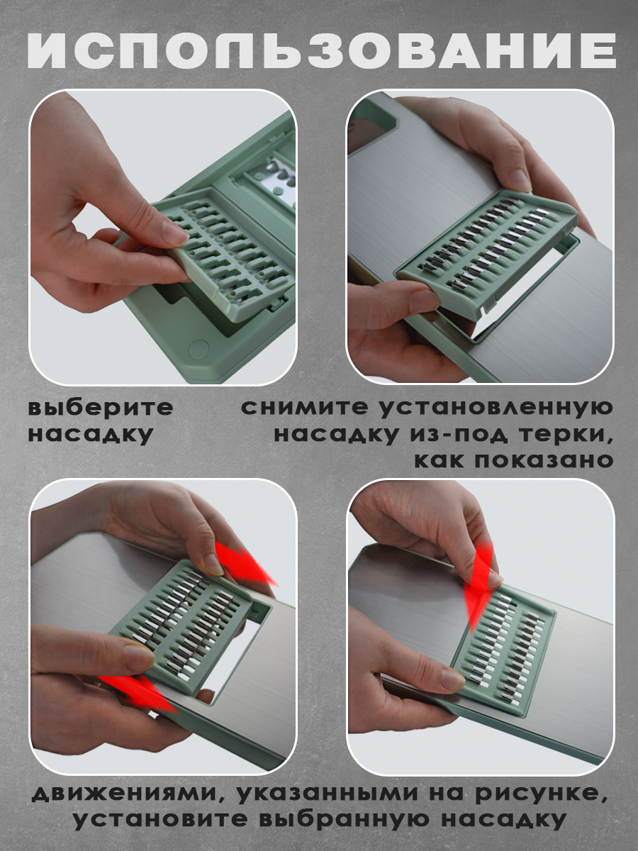 Купить Тёрка для корейской моркови, овощерезка, шинковка с 6 насадками
