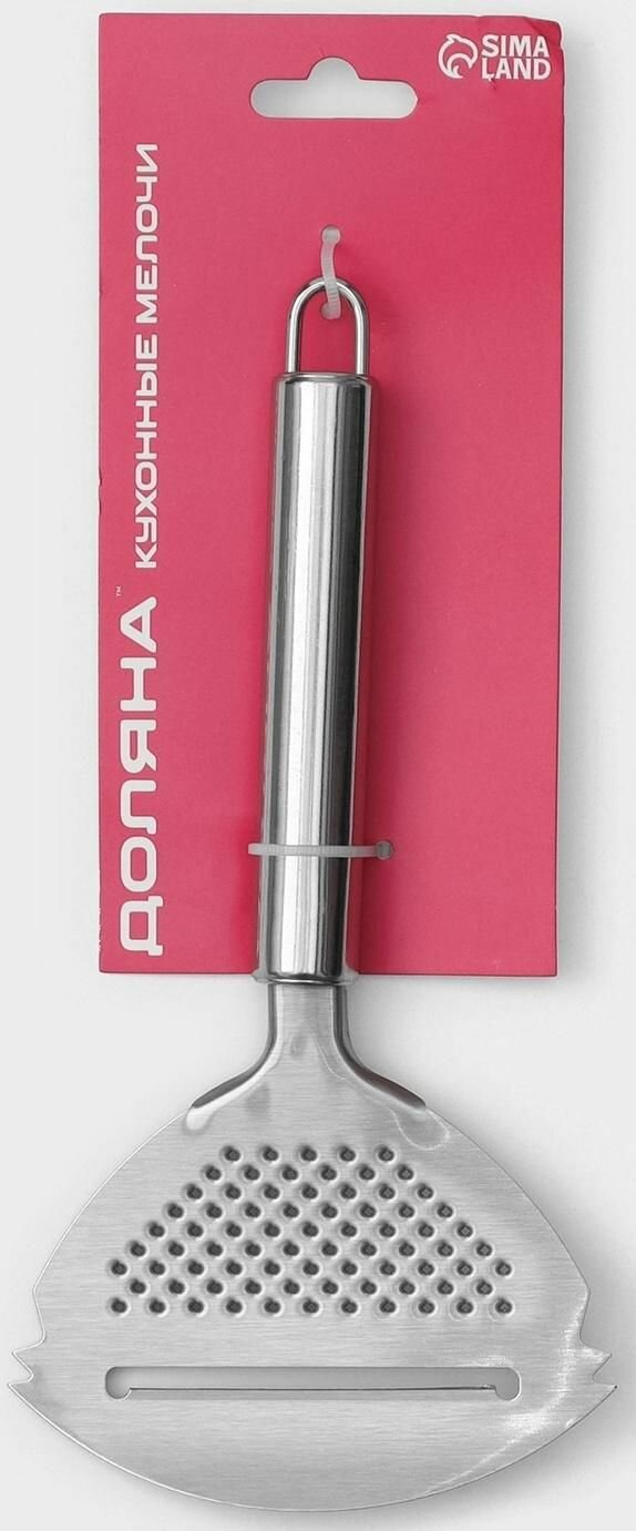 Тёрка мелкая Доляна «Помощник», 19×5 см, с ручкой, цвет серебряный