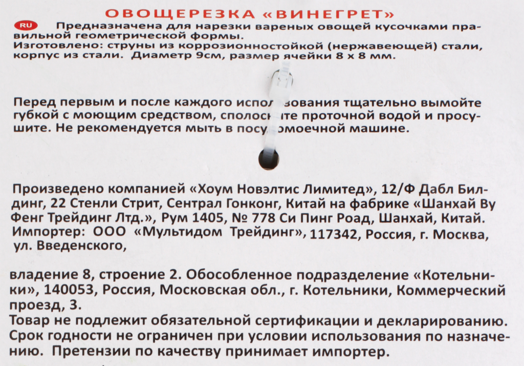 Мультидом Овощерезка "Русский винегрет" 8*8мм ~ ЭМ53-162 (Овощерезка) интересное: