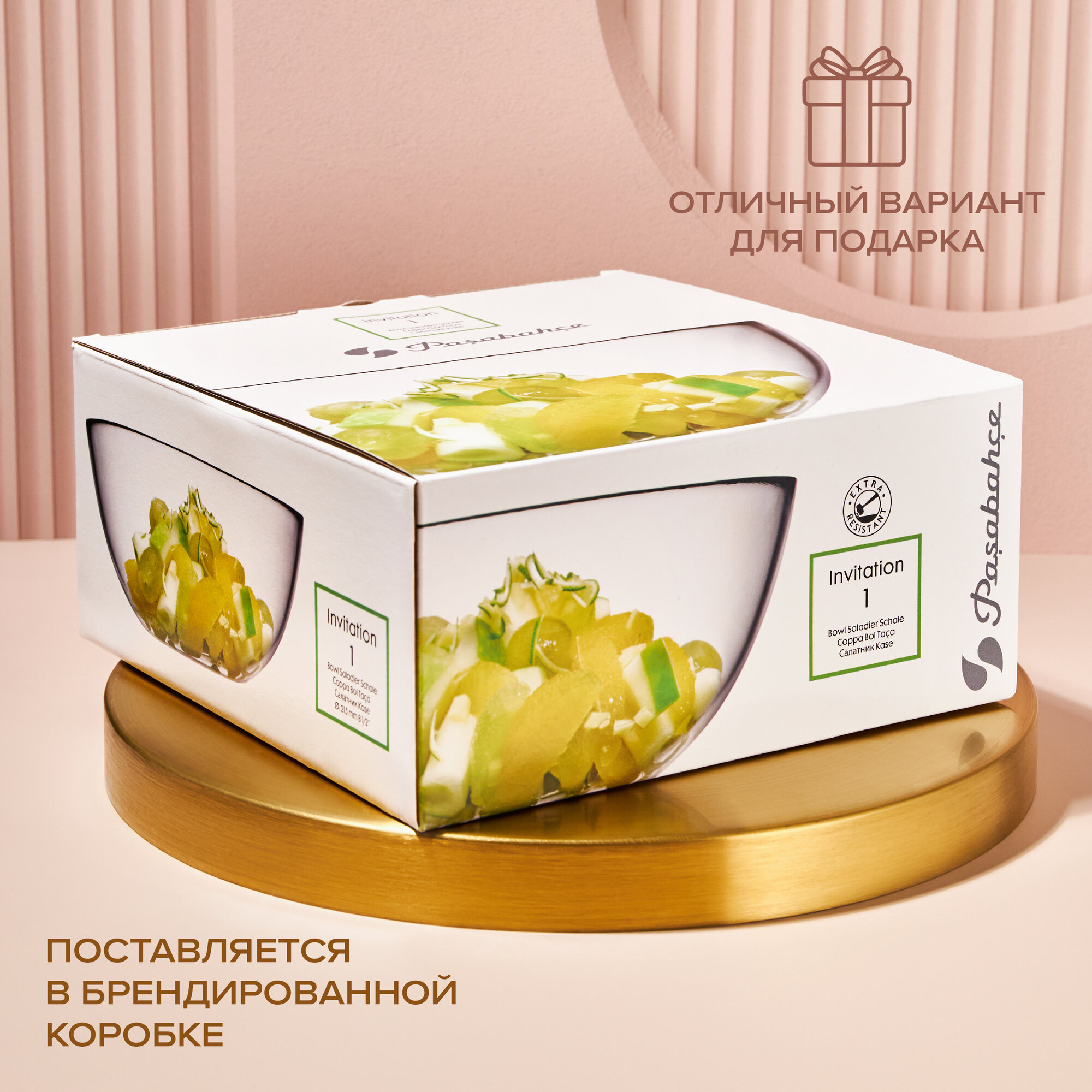 Салатник большой, 215 мм, стекло, PASABAHCE "инвитейшн", фирменная подарочная упаковка, 10342