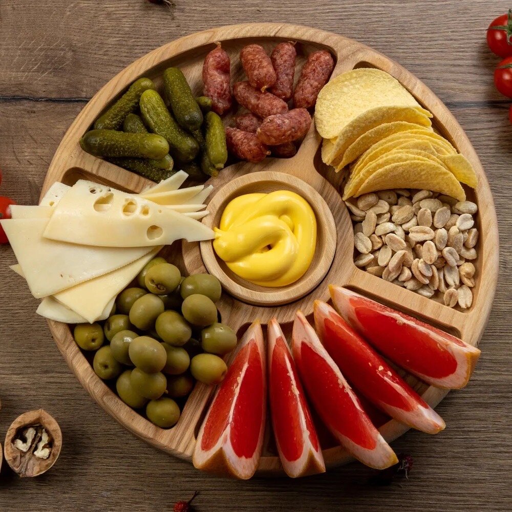 Менажница фарфоровая на бамбуковой подставке 29 см 5 секций
