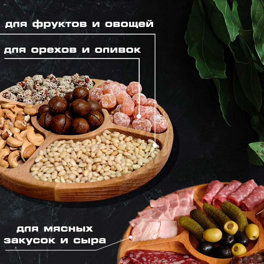 Менажница деревянная посуда для сервировки стола, 5 секций интересное: