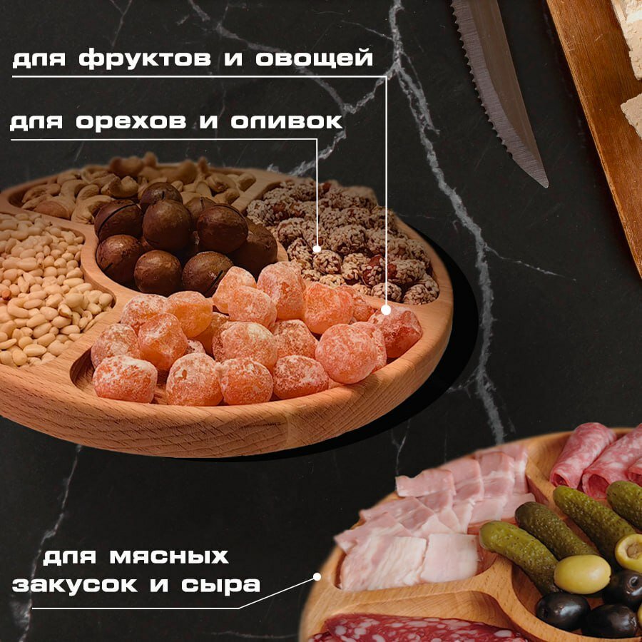 Менажница деревянная для подачи закусок, сервировочная доска