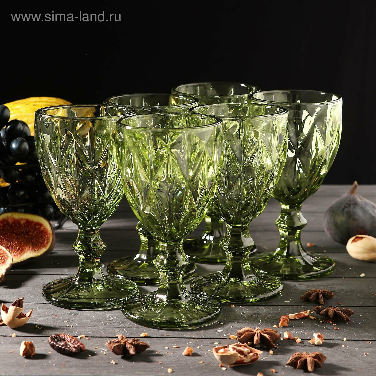 Набор бокалов стеклянных «Круиз», 250 мл, 8×15,3 см, 6 шт, цвет зелёный интересное: