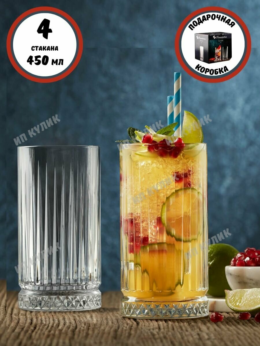 Набор стаканов для воды и коктейлей "Pasabahce Elysia", 4 штуки, 445мл