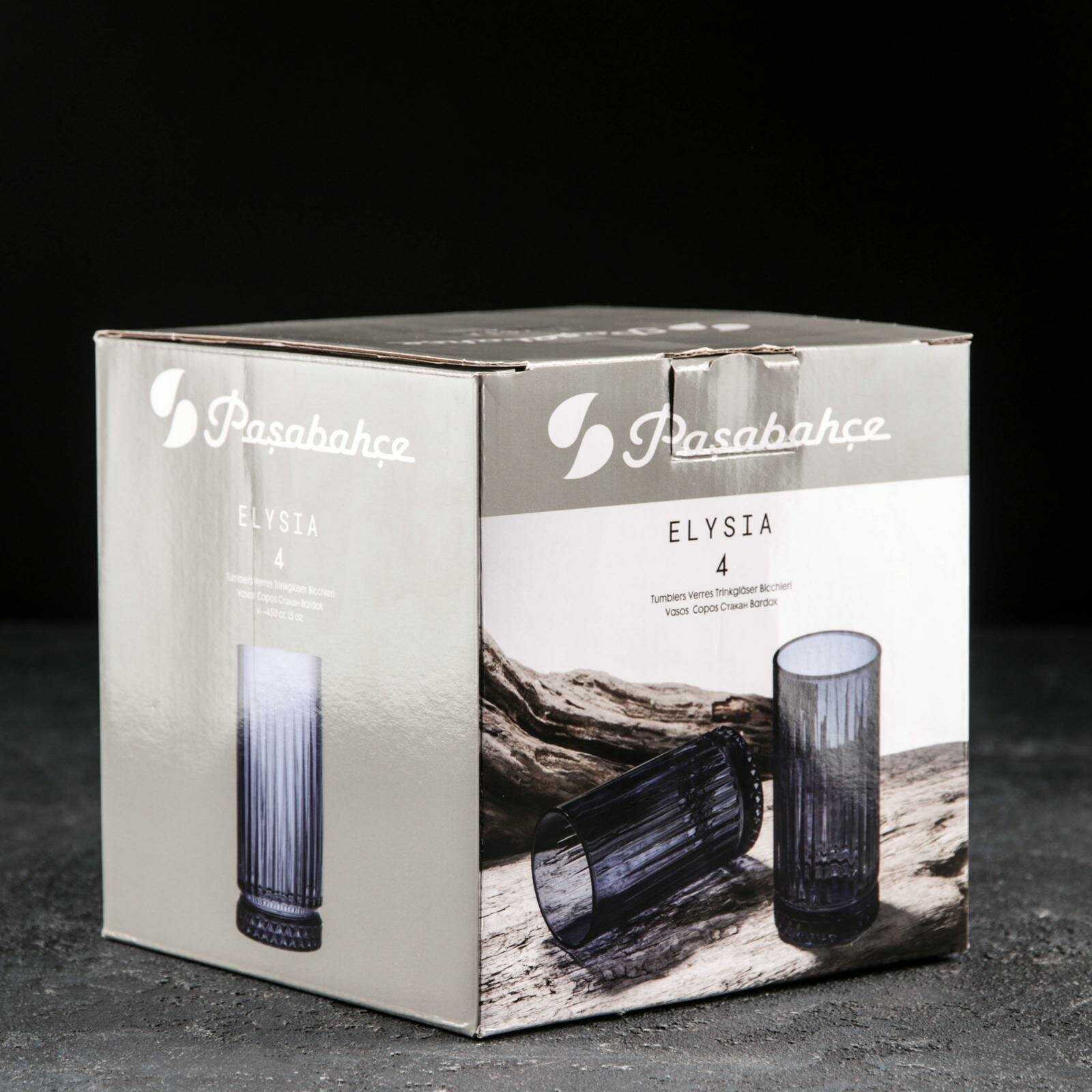 Paşabahçe Набор стеклянных стаканов Elysia, 445 мл, 4 шт, цвет серый